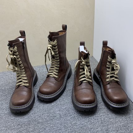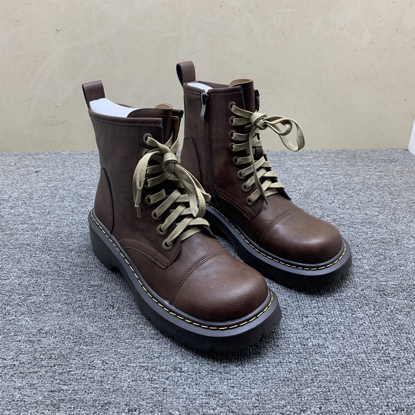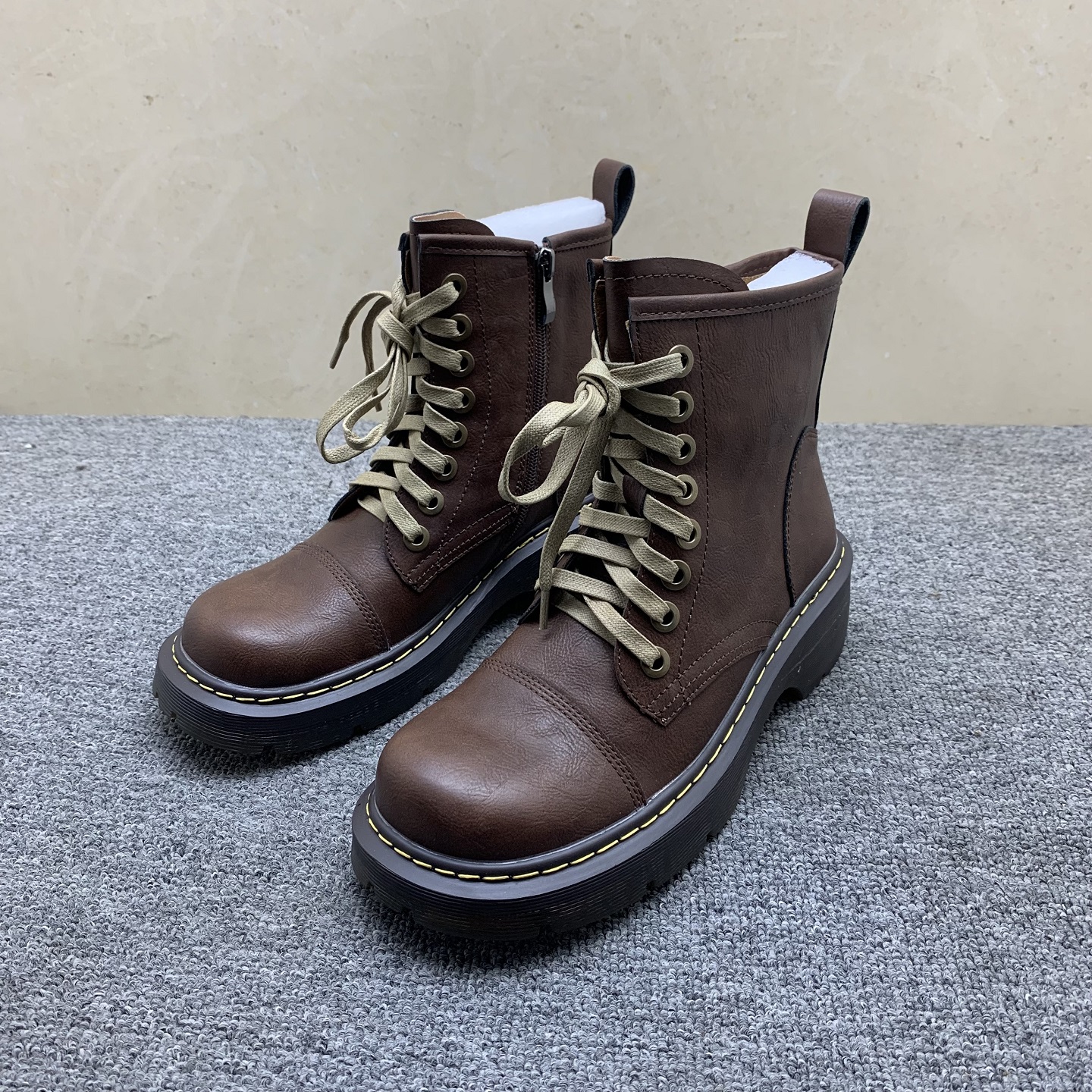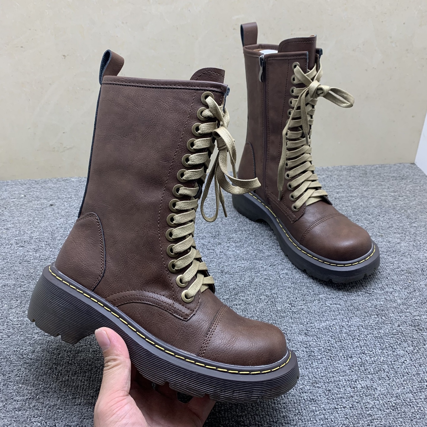 森系马丁靴女2025秋季新款棕色英伦风中筒厚底复古系带短靴子单里