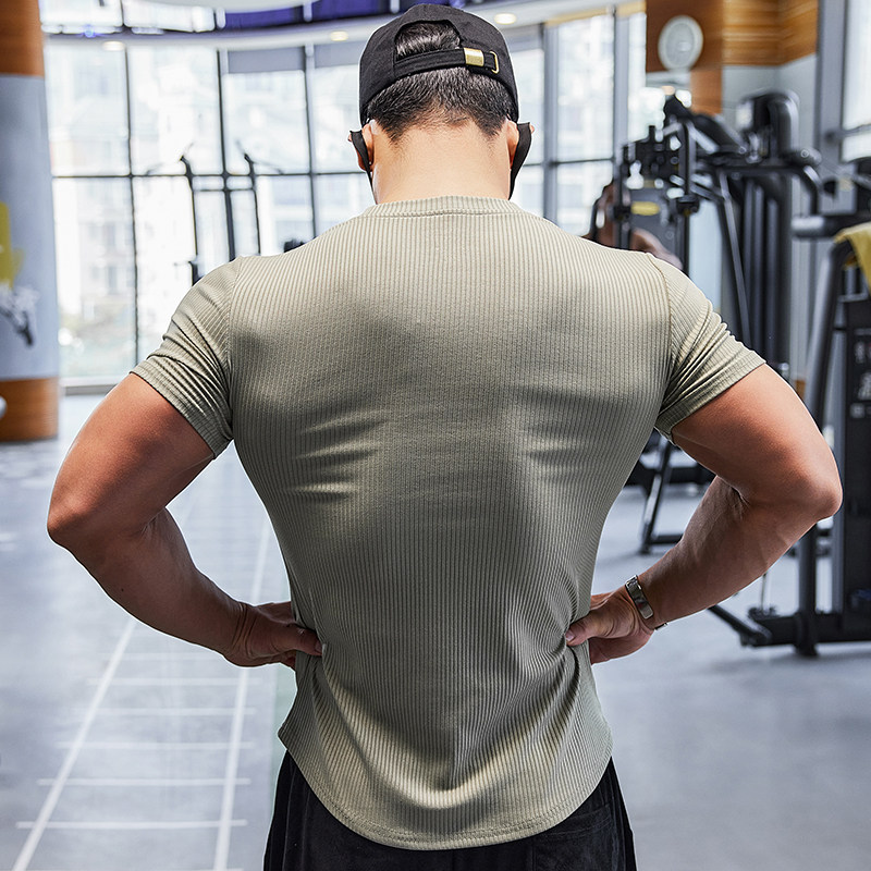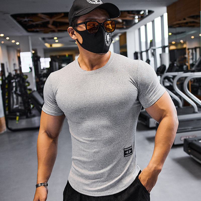 撸铁狼圆领速干短袖T恤教练健身衣服男款肌肉训练弹力修身运动秋
