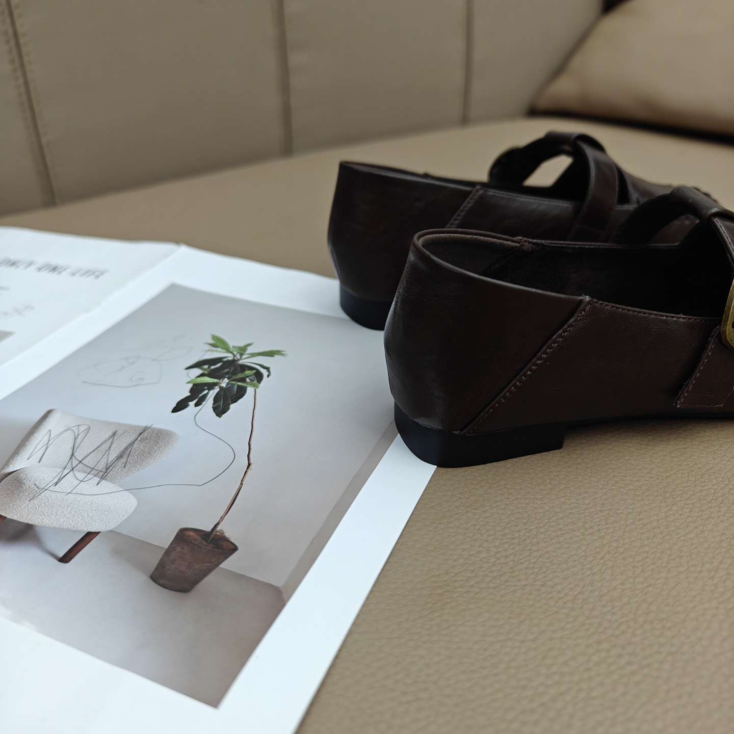 欧洲站时尚女鞋2025新款百搭小众皮带扣魔术贴软皮韩版平底小皮鞋