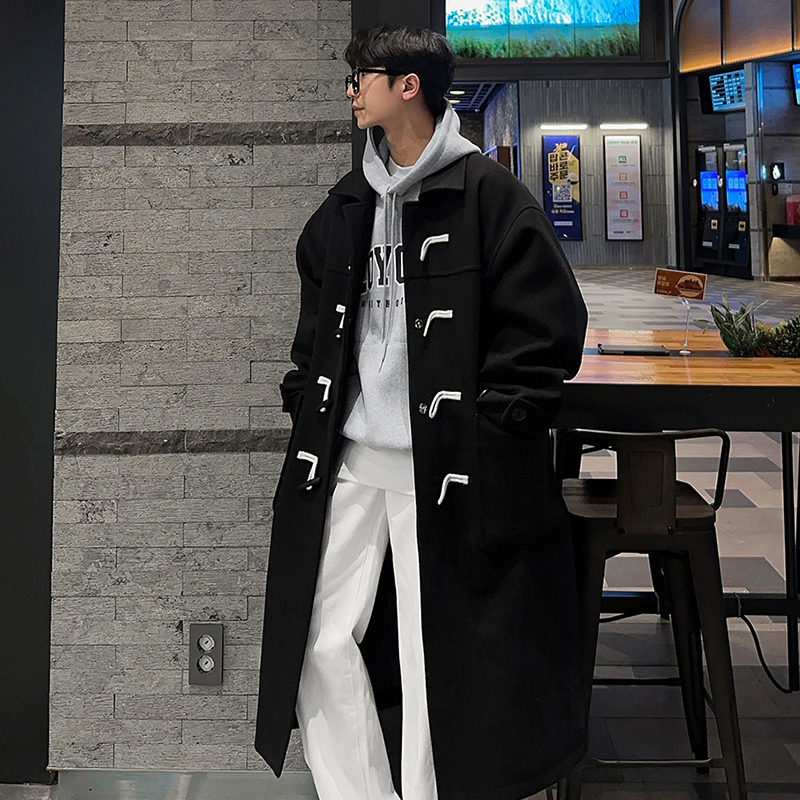 牛角扣大衣男秋冬款韩系呢大衣中长款风衣羊角扣毛呢大衣冬季外套