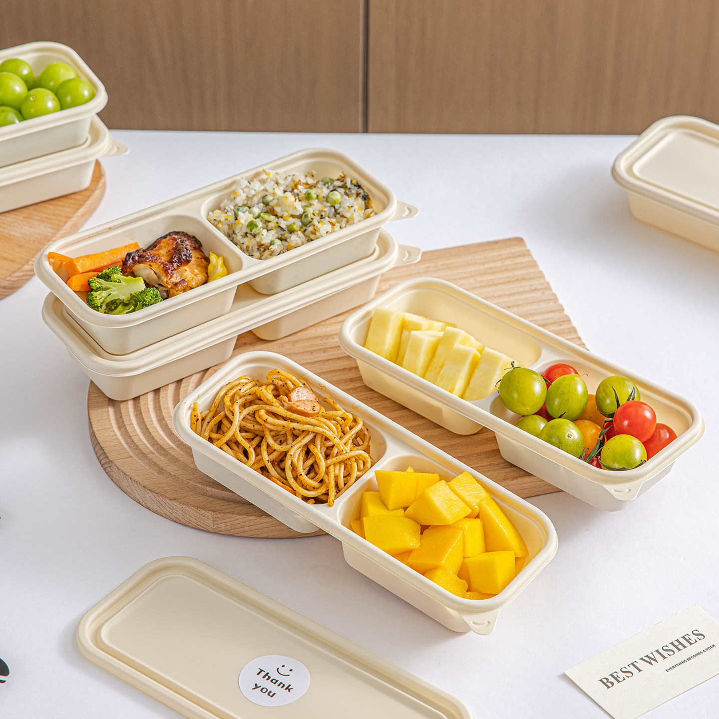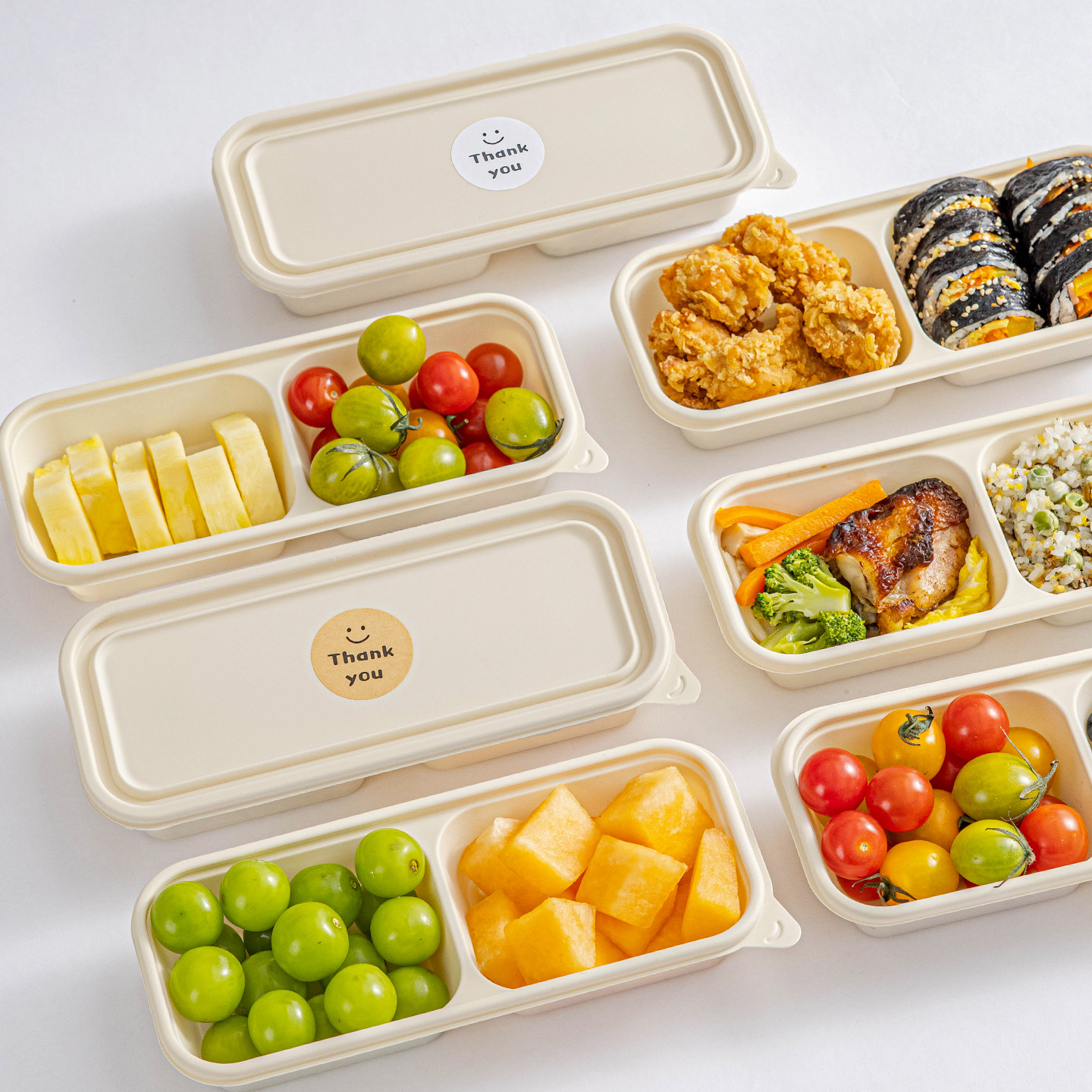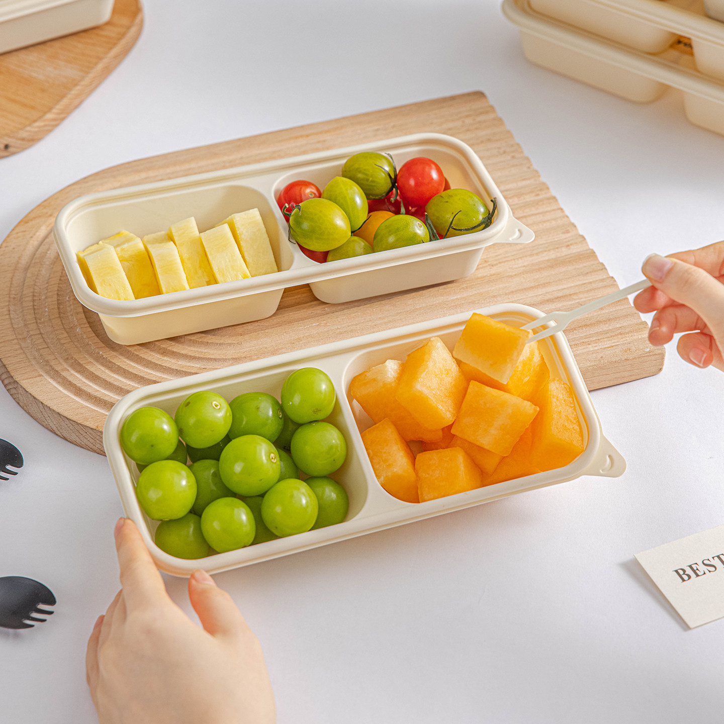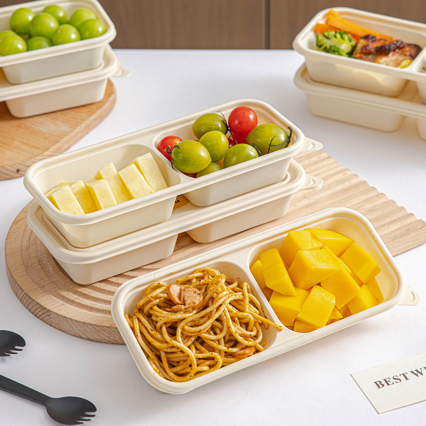 一次性餐盒饭盒打包碗分装双格轻水果玉米淀粉食品级可微波炉加热