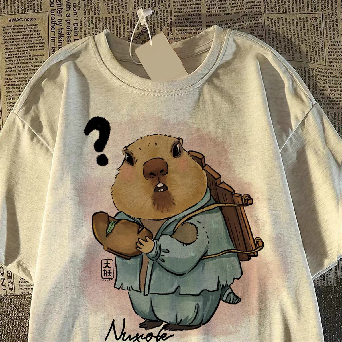 美式潮牌卡通土拨鼠印花短袖t恤男女童夏季宽松街头百搭半袖上衣