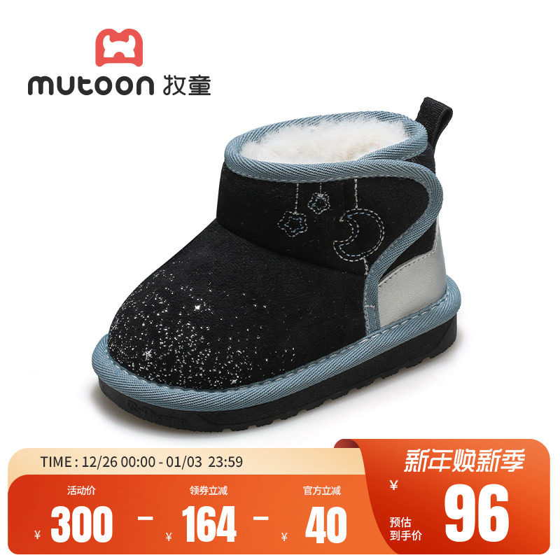 牧童宝宝雪地靴2025冬季新款女童加厚保暖黑色大棉鞋加绒幼童鞋子