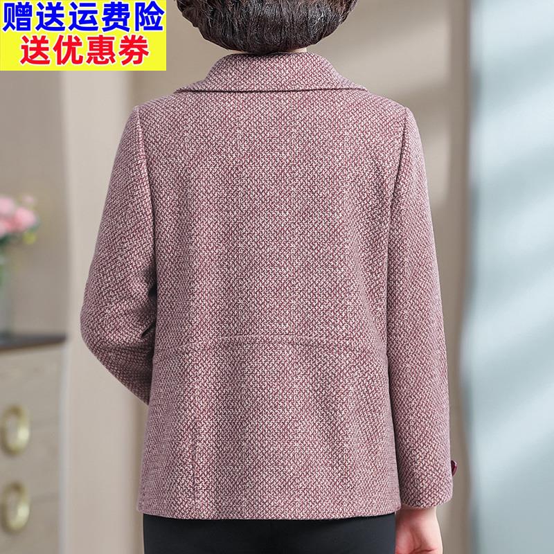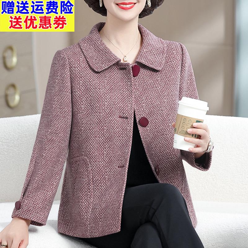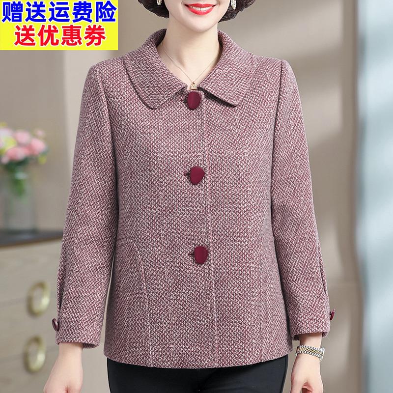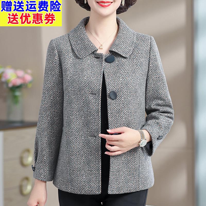 妈妈春装洋气大码外套春秋毛呢子大衣中老年女格子上衣服2025新款