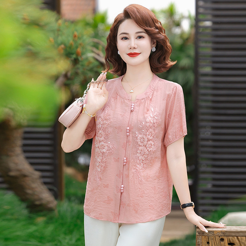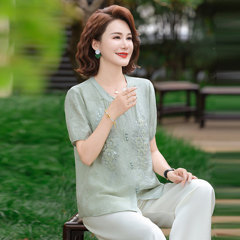 妈妈夏装时尚上衣中年短袖衬衫2025新款中老年女夏季T恤洋气套装