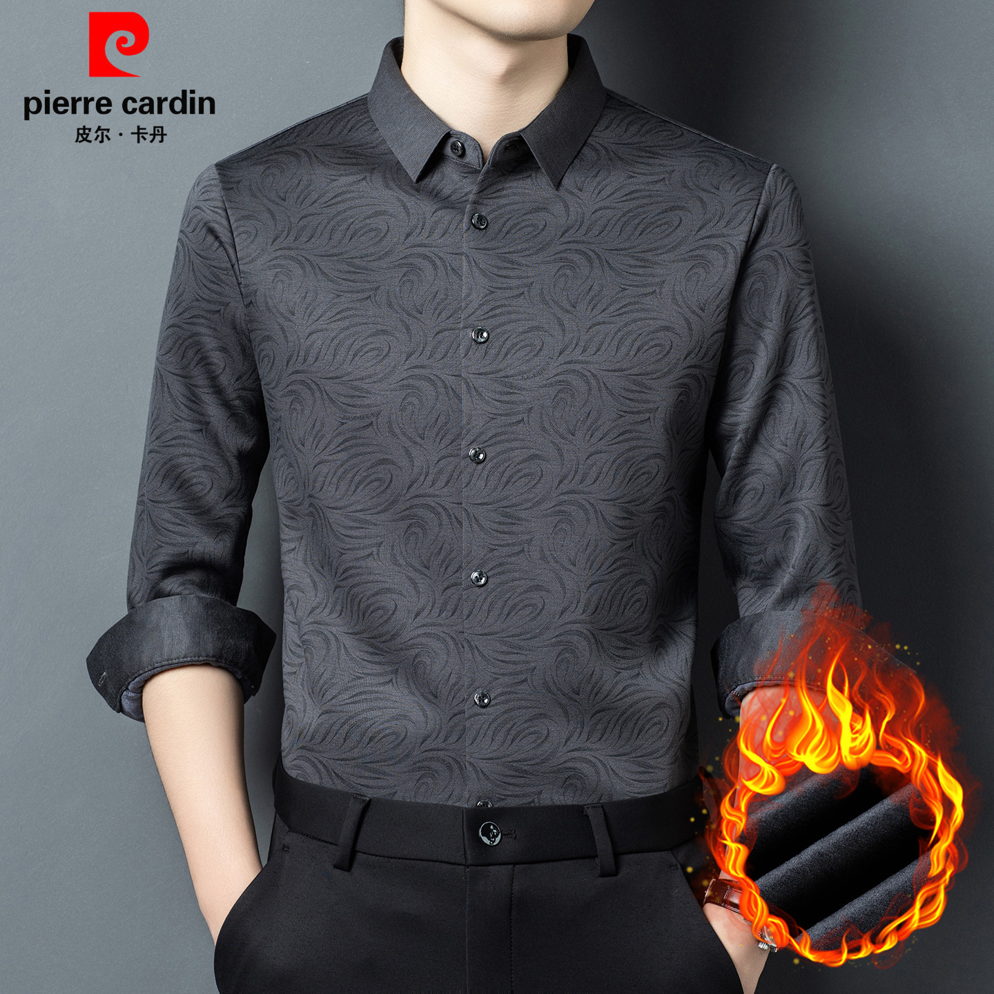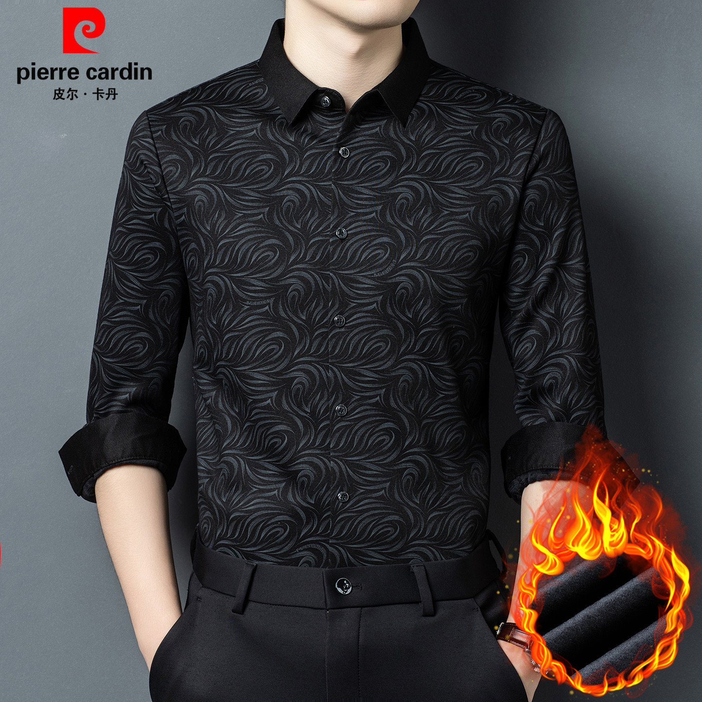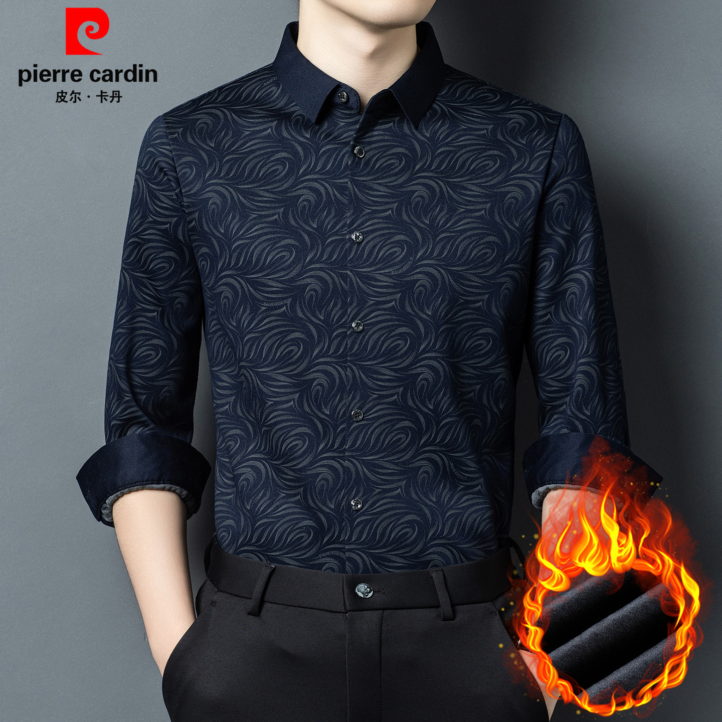 皮尔卡丹冬季男士一体绒保暖衬衫
