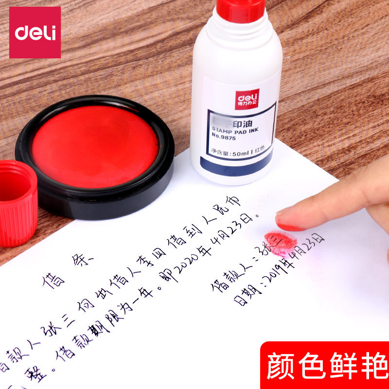 得力印油9875红色大瓶50ml公章印油财务办公用品水性印油印章印台油墨补充填充油防水印泥油
