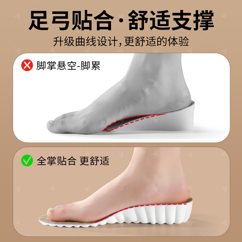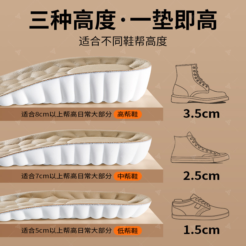 适用于添柏岚牛皮增高鞋垫不累脚隐形内增高足弓支撑不塌陷增高垫