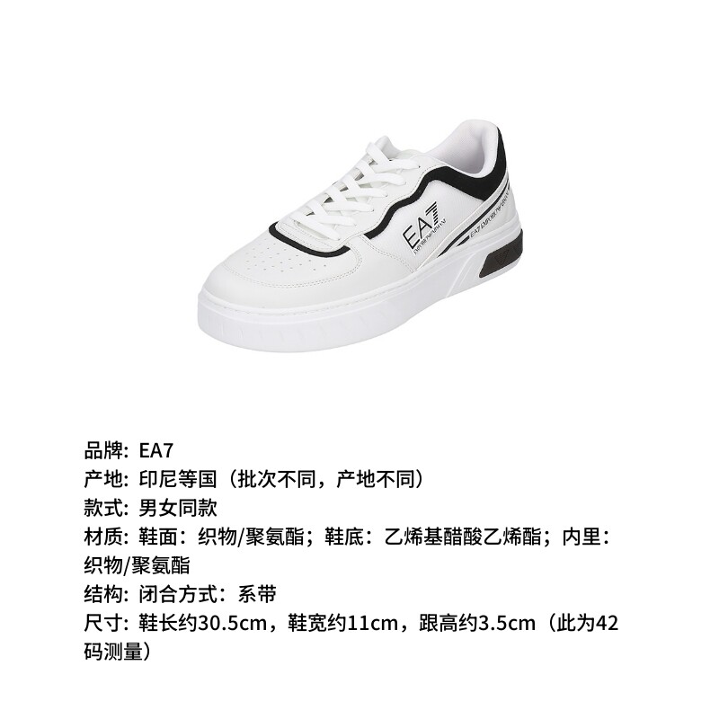 EA7阿玛尼 男女同款厚底系带运动休闲鞋小白鞋 7X000338 AF18614