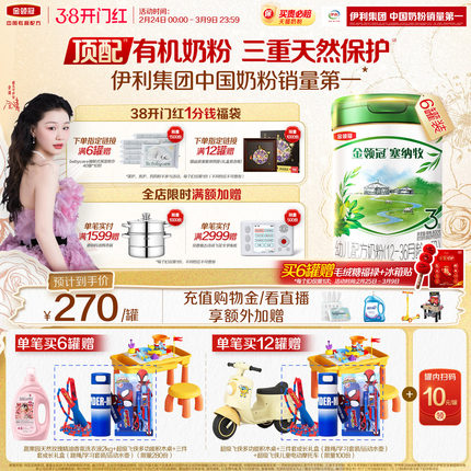 【新鲜】伊利金领冠塞纳牧3段12-36个月婴幼儿有机牛奶粉800g*6罐
