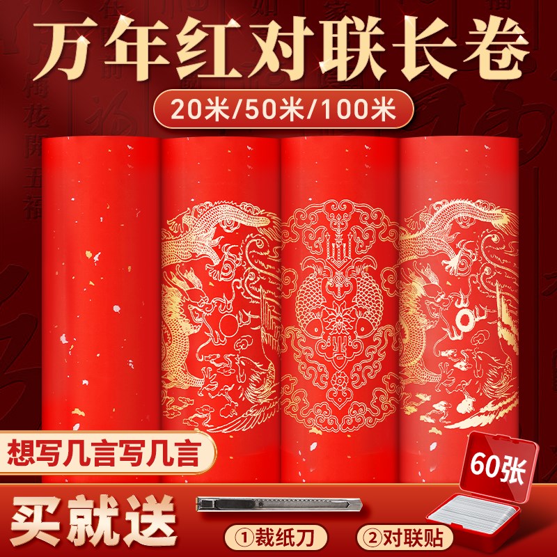 对联纸万年红长卷春联纸自写春联对联纸2025新款空白手写红纸宣纸