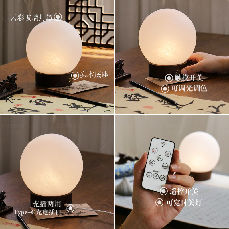 新中式台灯宋代美学禅意简约球形玻璃茶室卧室床头氛围睡眠小夜灯
