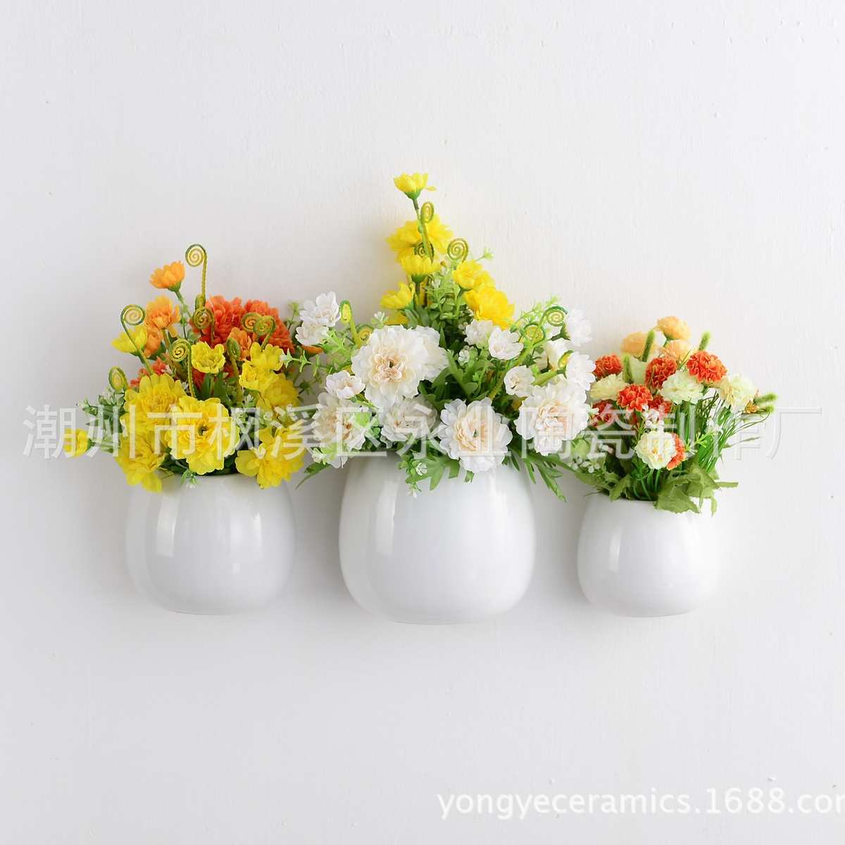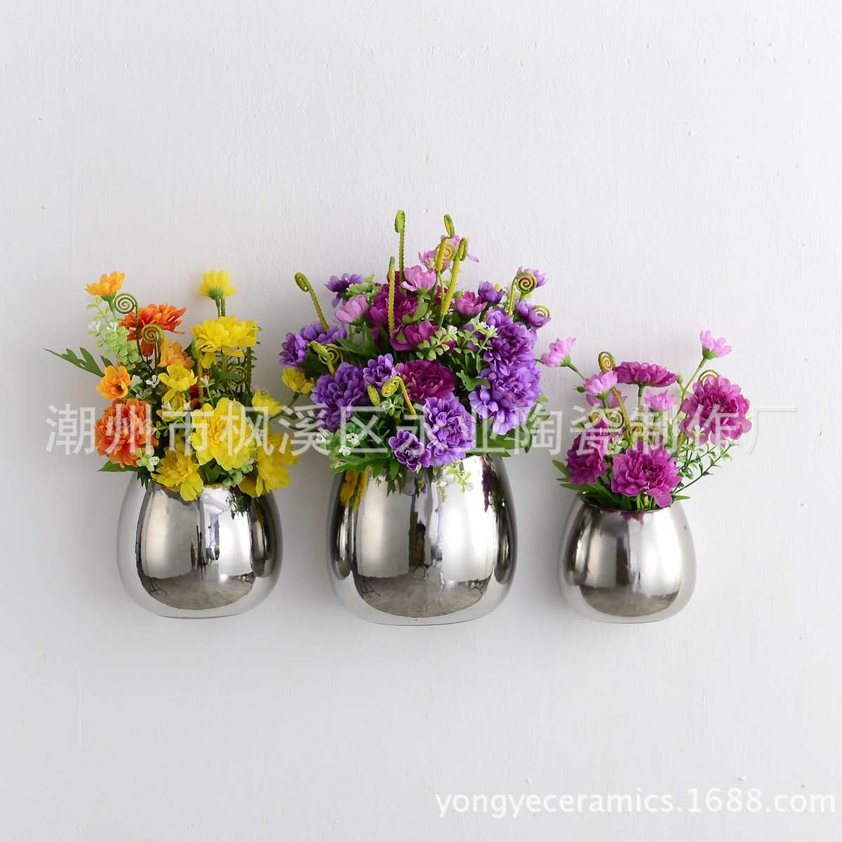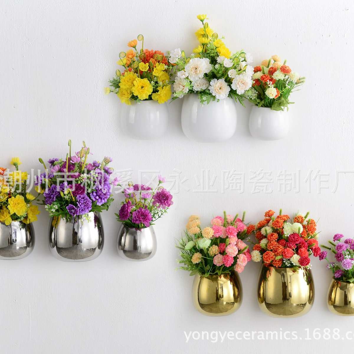 多肉花盆陶瓷 简约现代客厅背景挂墙电镀陶瓷花瓶 创意花盆
