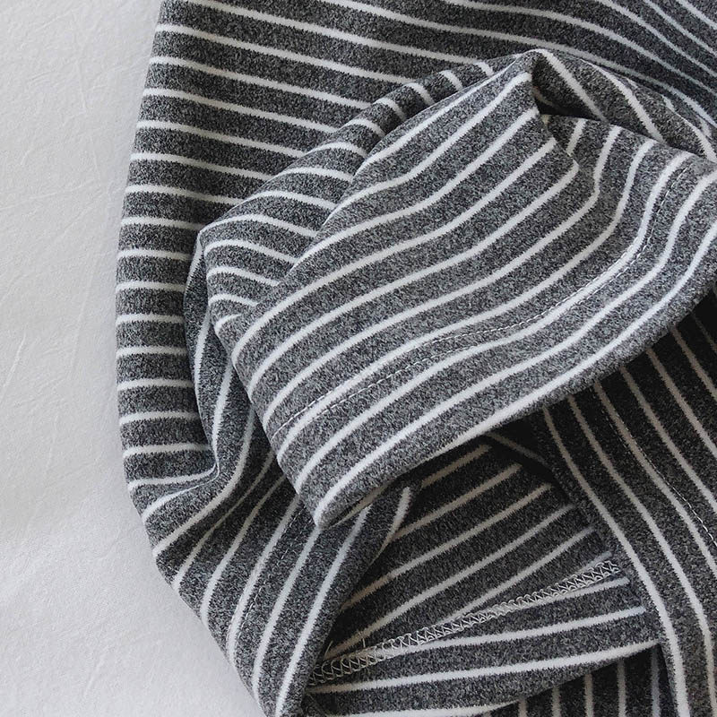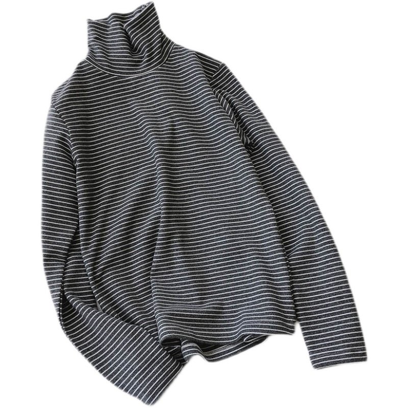 巨软糯/高领条纹t恤女长袖上衣百搭加绒加厚德绒打底衫女内搭显瘦