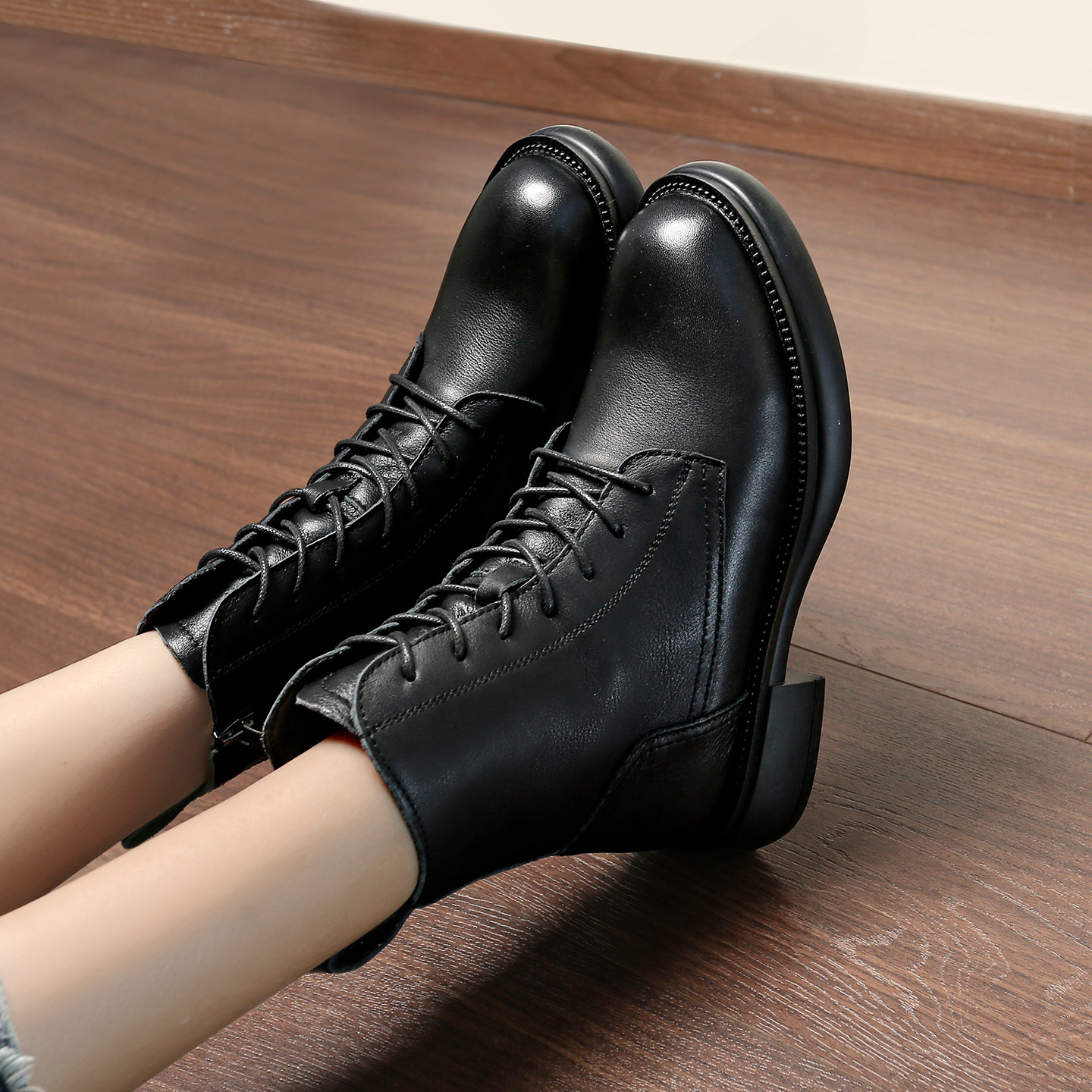 真皮平底小短靴女英伦马丁靴单靴秋冬软底软面头层牛皮高帮棉皮鞋