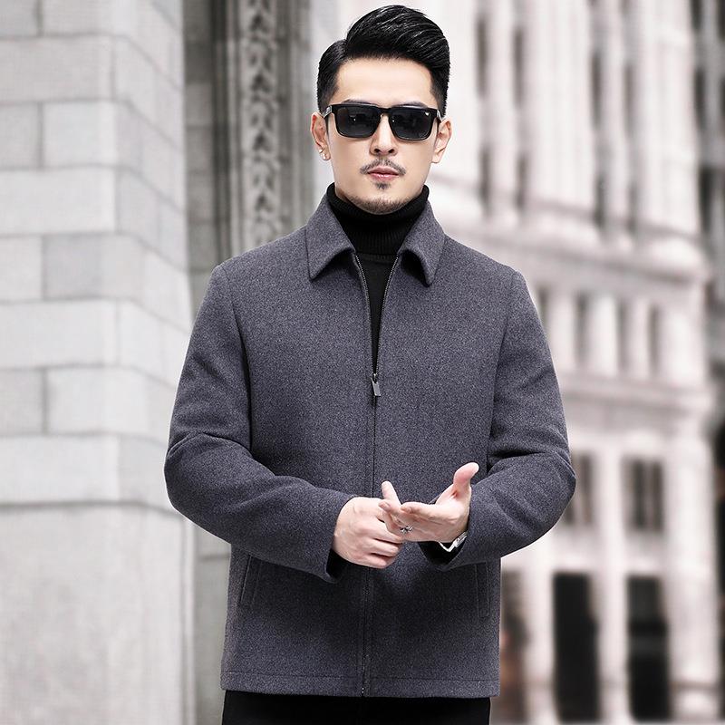 尼季子大衣男羊毛子冬外99802-PP套短款翻领中年男羊绒呢夹克外套