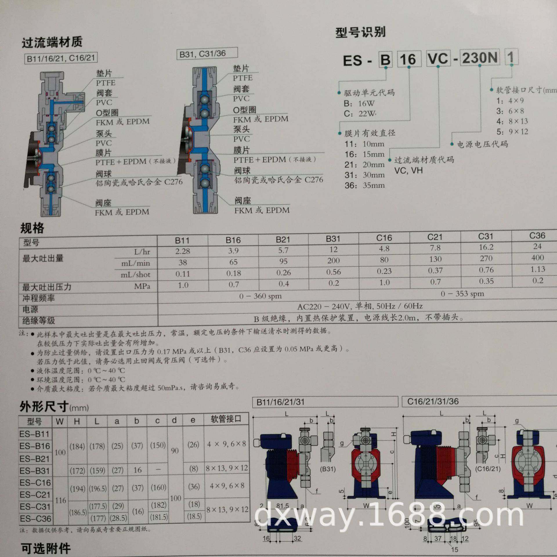ES-B16VC-230N1易威奇IWAKI电磁计量泵