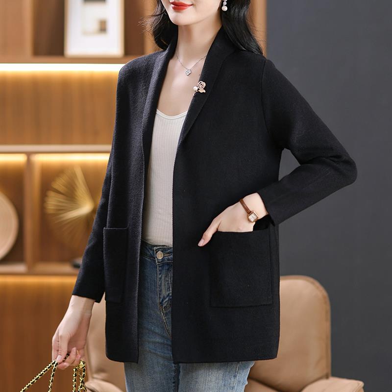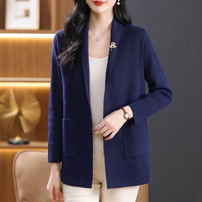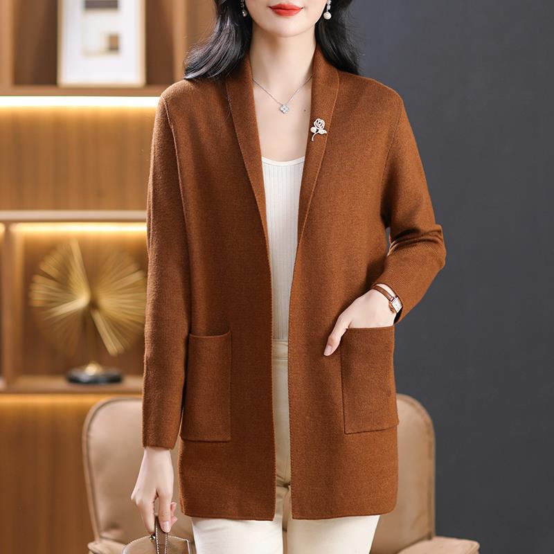 中年妈妈春秋毛衣洋气上衣女中长款外套宽松大码外搭羊毛针织开衫