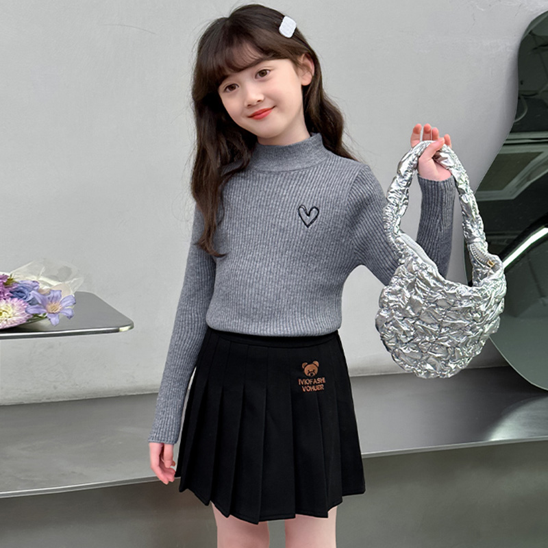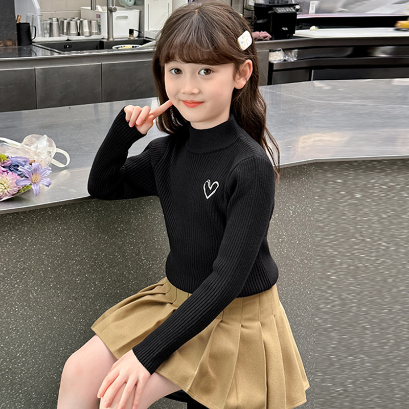 女童毛衣2025新款秋季薄款儿童打底衫早秋半高领一体绒内搭线衣冬