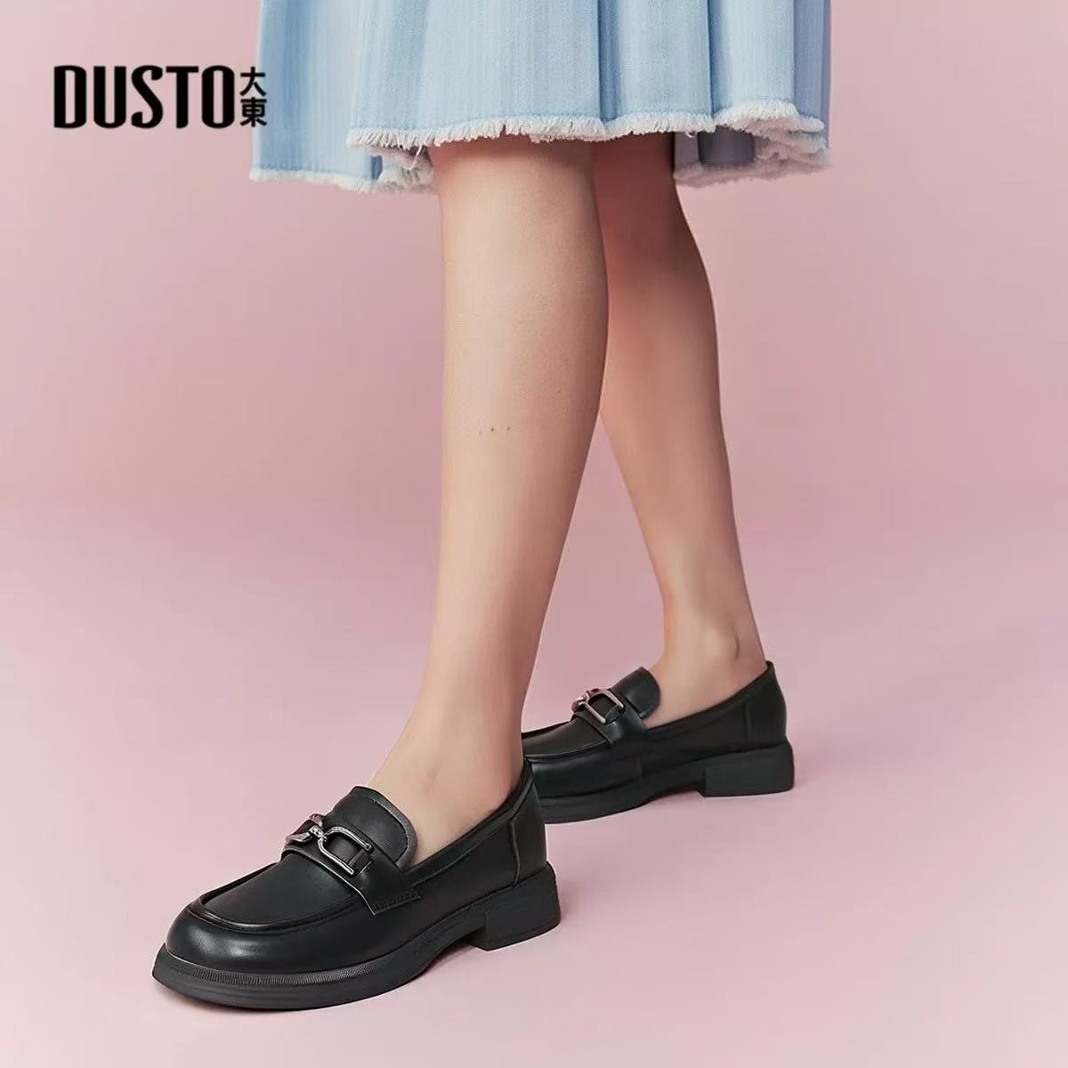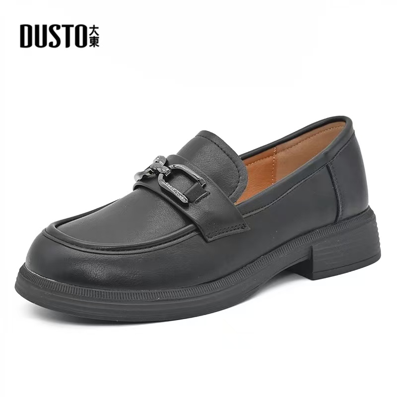 大东乐福鞋24秋季新款时尚优雅粗跟低跟套脚圆头休闲皮鞋24Q1210