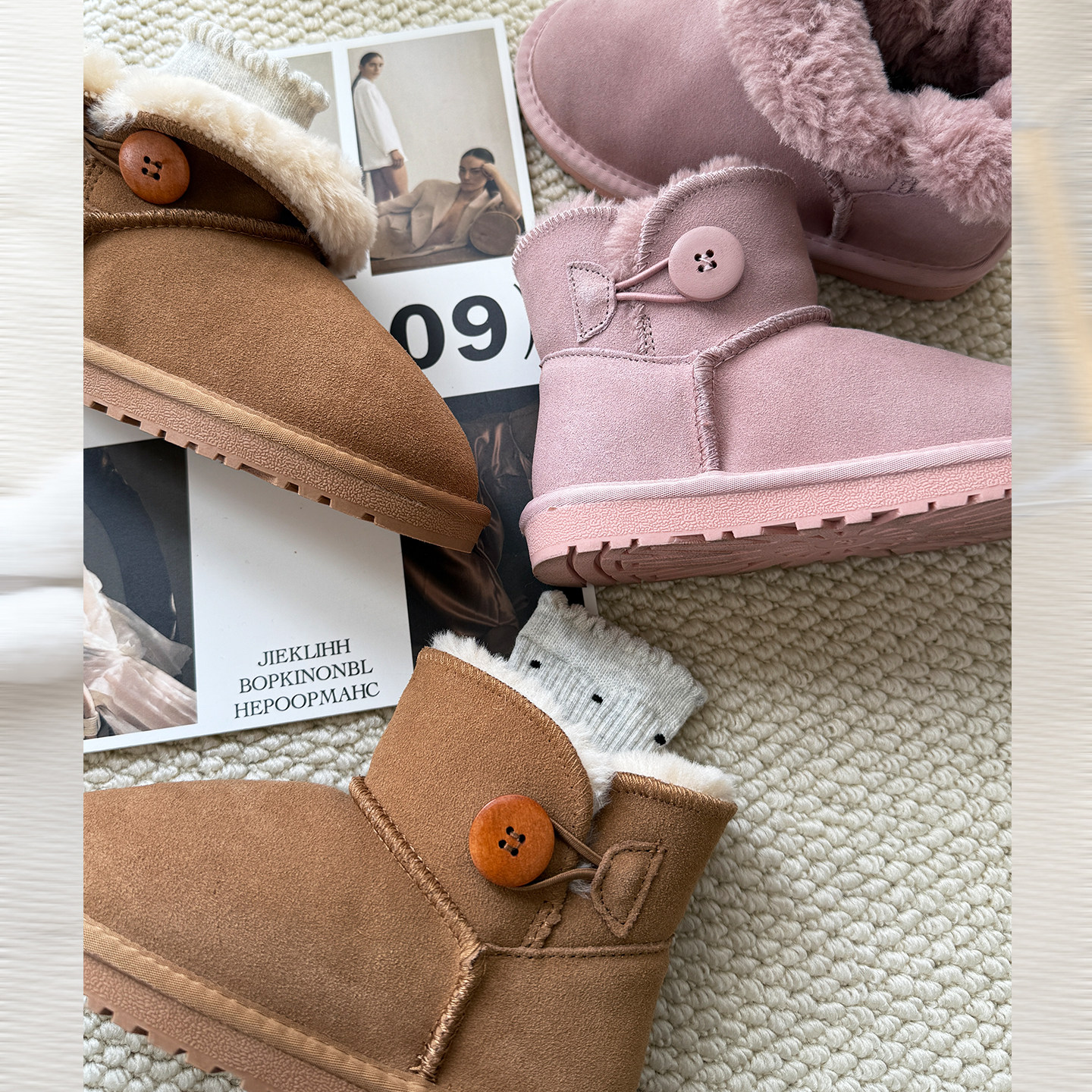 柒号童仓儿童韩版保暖雪地靴冬季女童面包鞋皮毛一体加厚防滑棉鞋