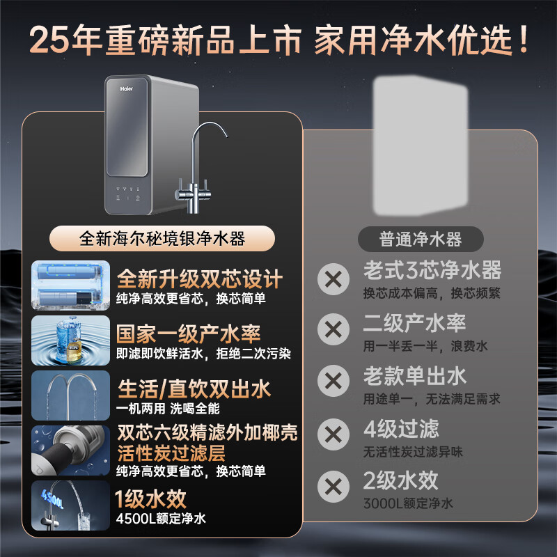 政府补贴20%海尔净水器家用加热一体直饮2025新款壁挂式管线机