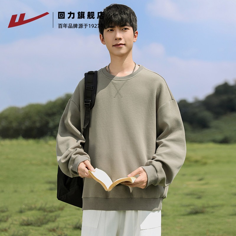 回力卫衣男款秋冬2025新款休闲重磅纯色百搭圆领内搭打底上衣外套