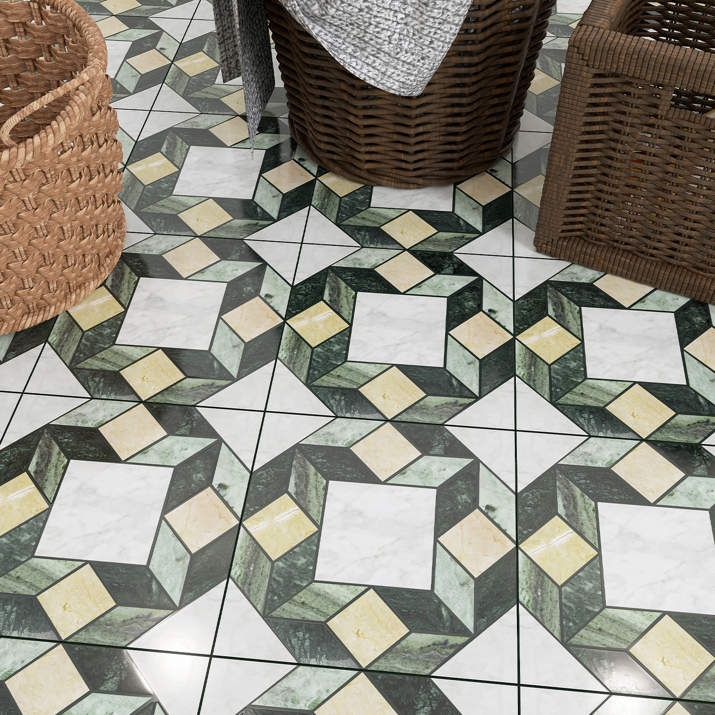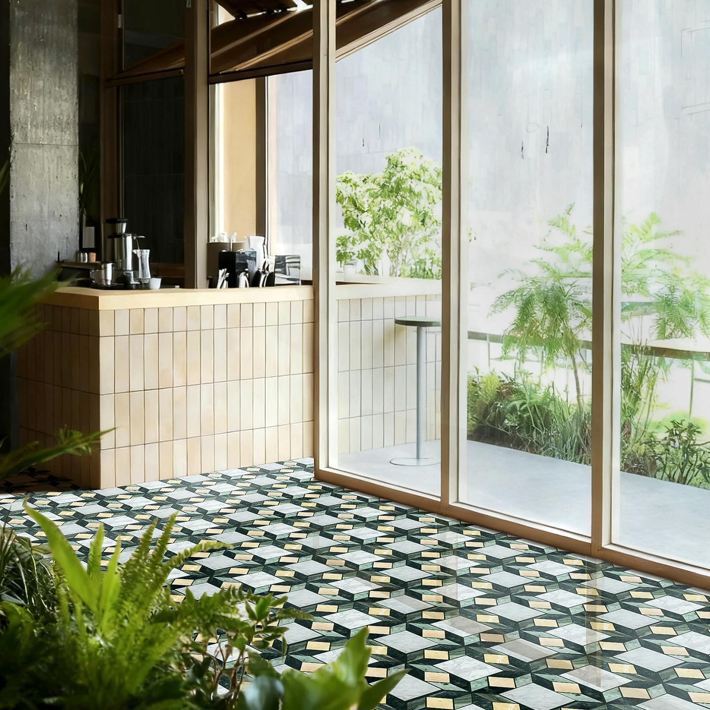 佳纷绿色花型石材马赛克阳台泡池水池大堂别墅庭院大理石新品瓷砖