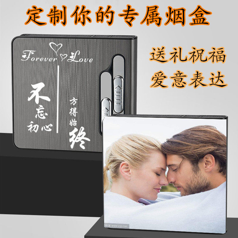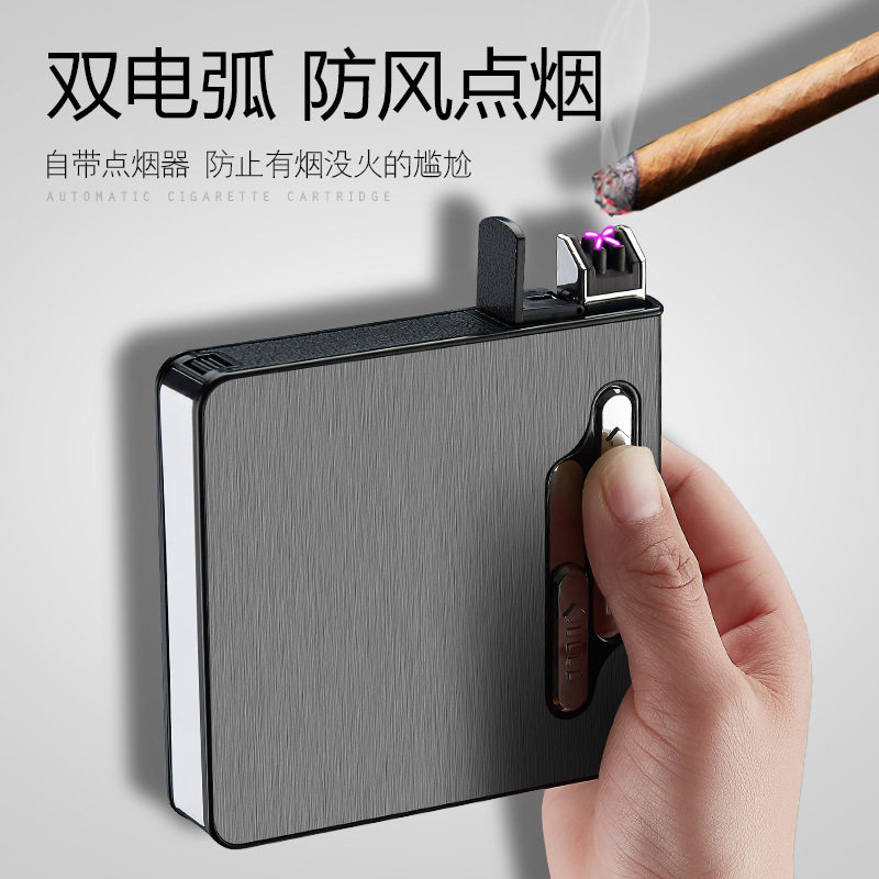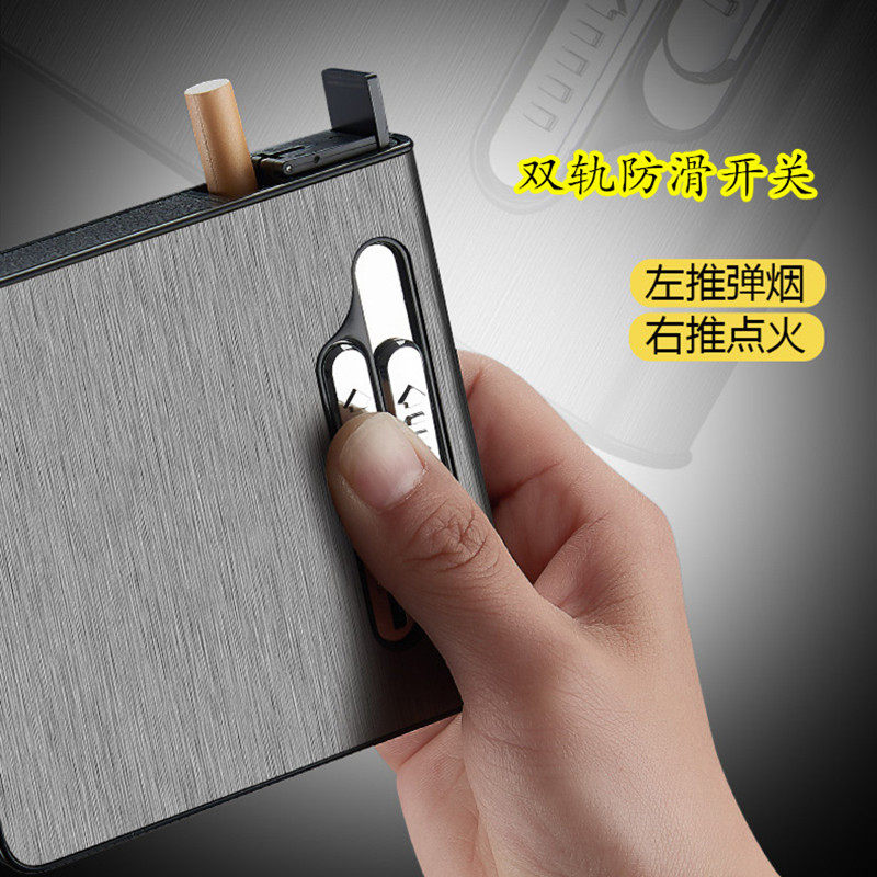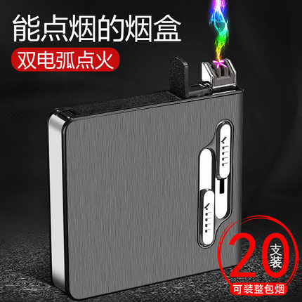 双电弧烟盒打火机一体20支装超薄便携创意金属男个性定制充电烟盒
