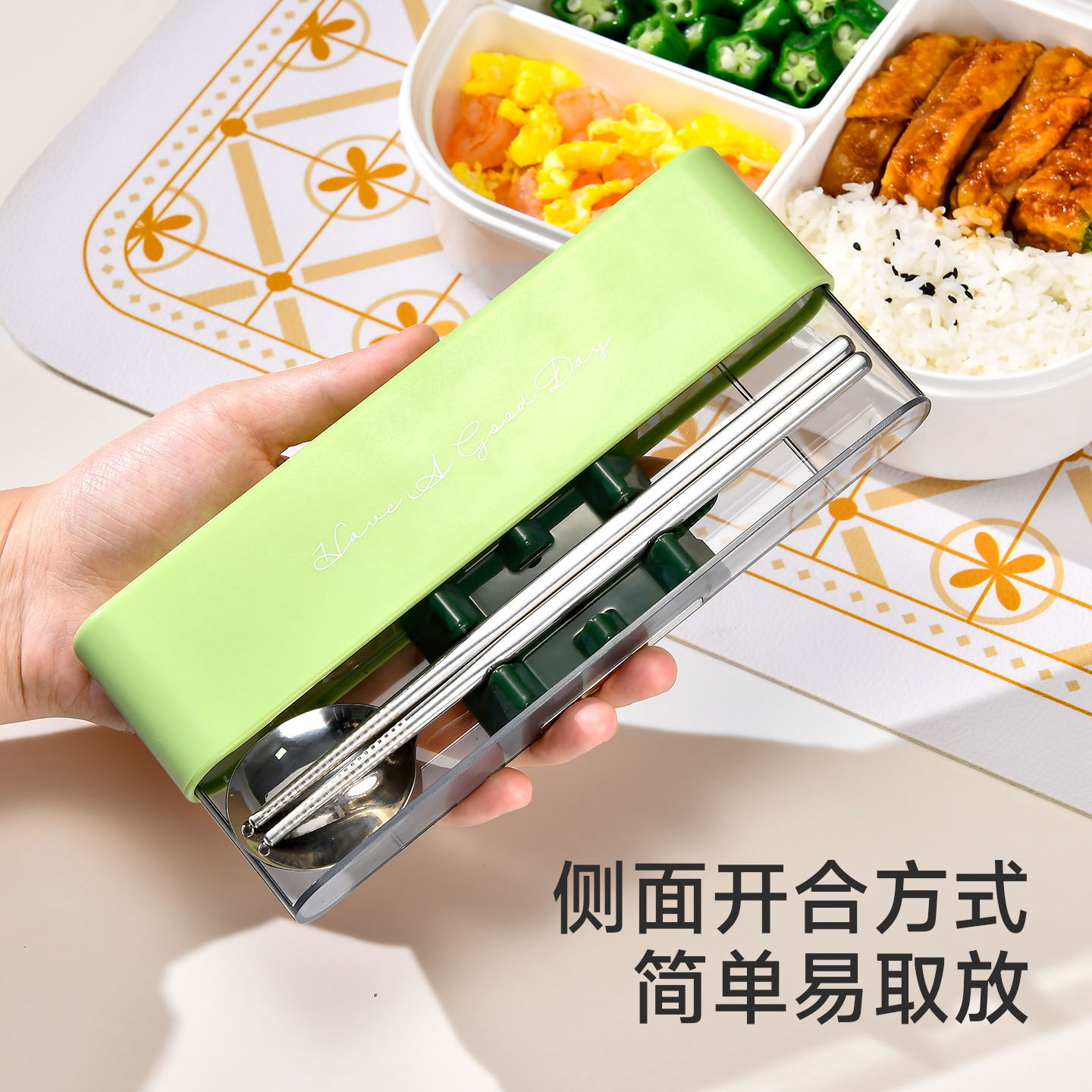 日本筷子勺子套装一人用上班便携餐具盒成人小学生个人专用收纳盒
