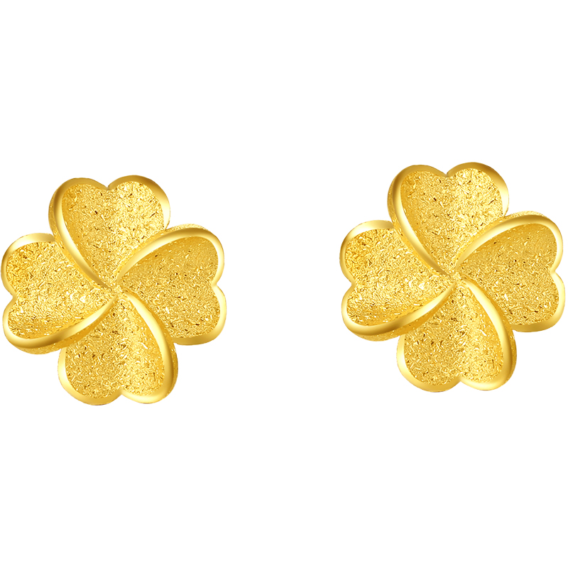 周六福四叶草黄金耳钉女计价足金幸运草耳饰首饰送女友礼物