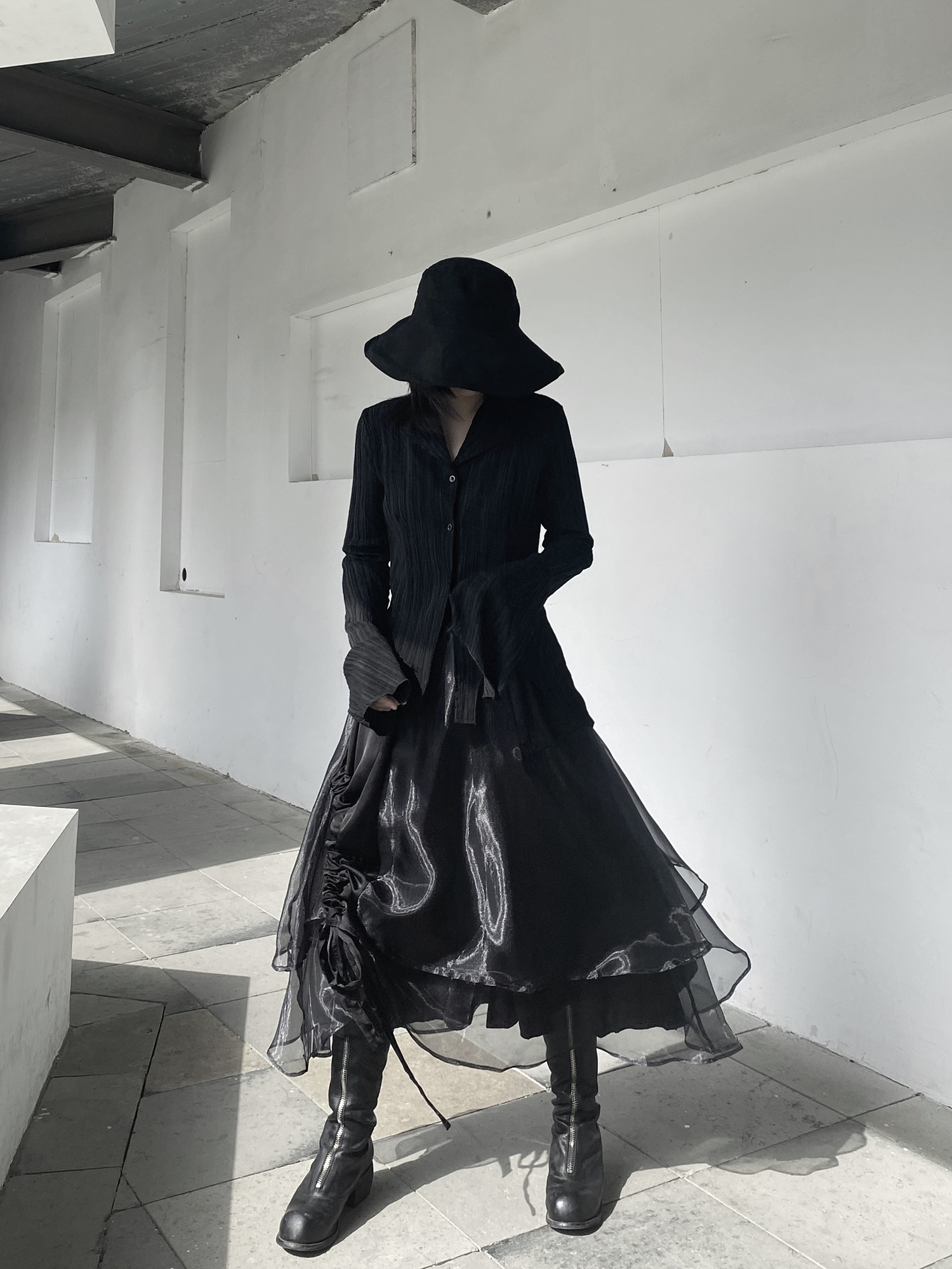 隐觅 2025春秋新品松紧显瘦长裙新中式复古裙子暗黑系抽绳半身裙