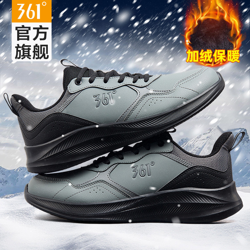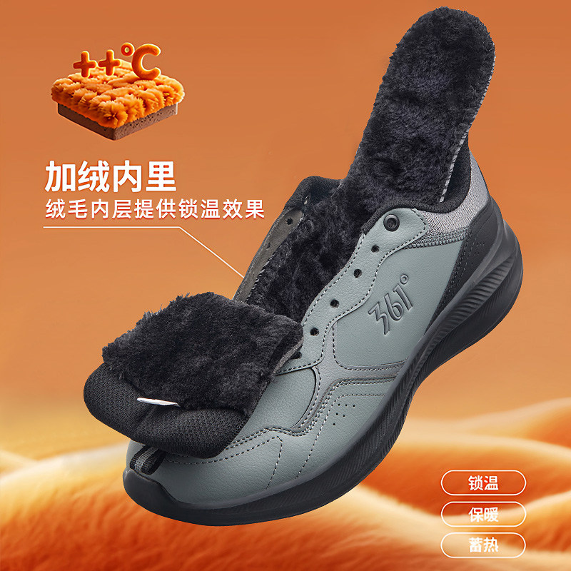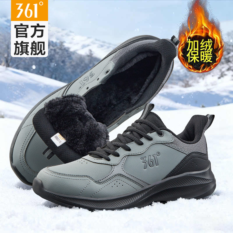 361加绒男鞋冬季新款皮面防水休闲鞋子加厚保暖运动鞋男款二棉鞋