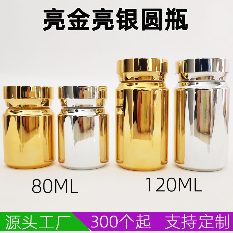 亮金亮银色高档保健品瓶药瓶空瓶胶囊瓶粉末压片糖果片剂包装瓶子