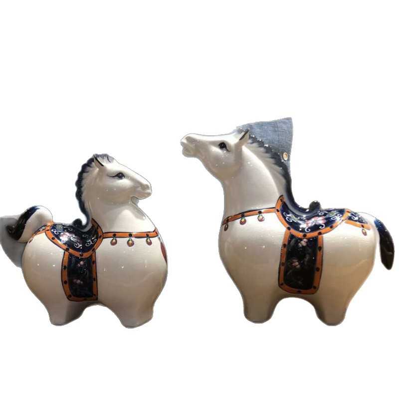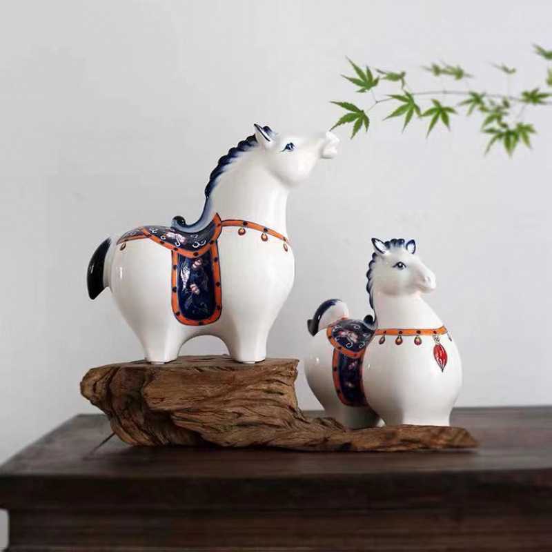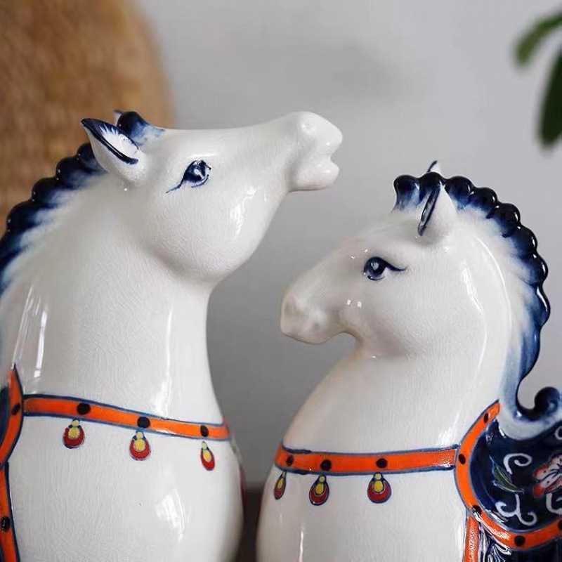 新中式陶瓷工艺品动物青花小马摆件家居礼品创意电视柜酒柜装饰品