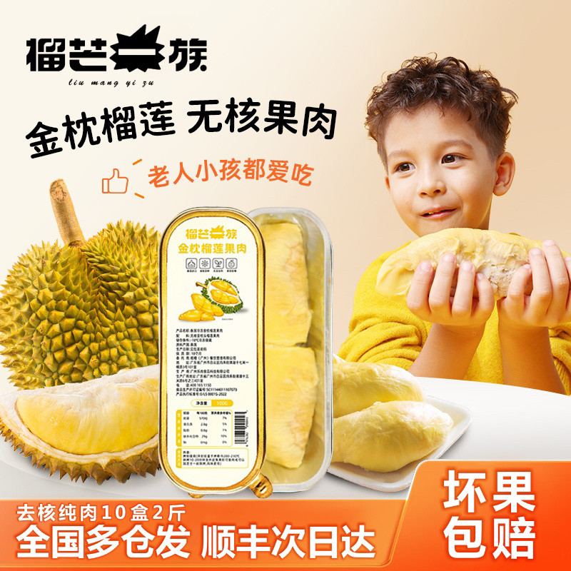 进口泰国5A级金枕榴莲肉无核新鲜纯果肉冷烤双吃冷冻榴莲肉盒装