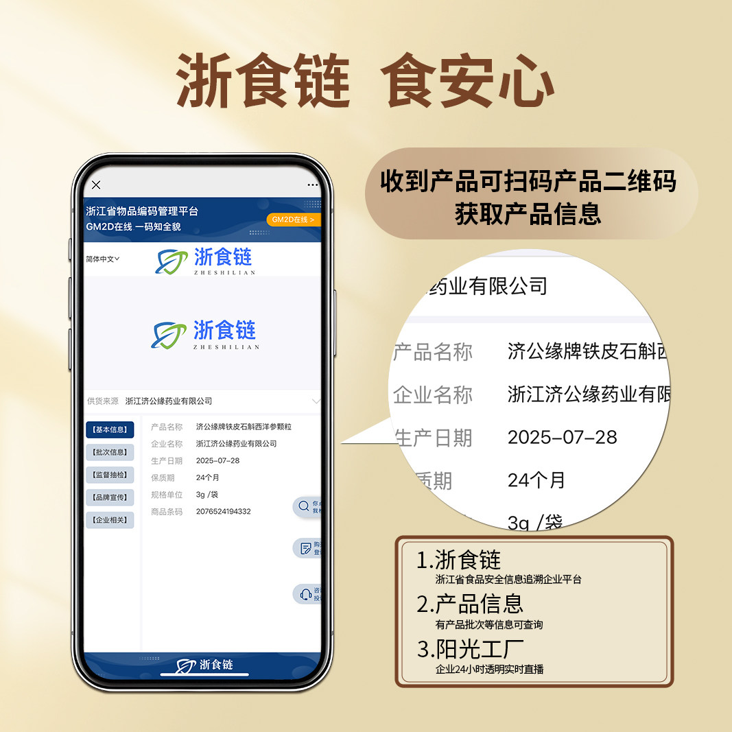 【增强免疫】济公缘0蔗糖铁皮石斛西洋参颗粒铁皮枫斗冲剂礼盒装