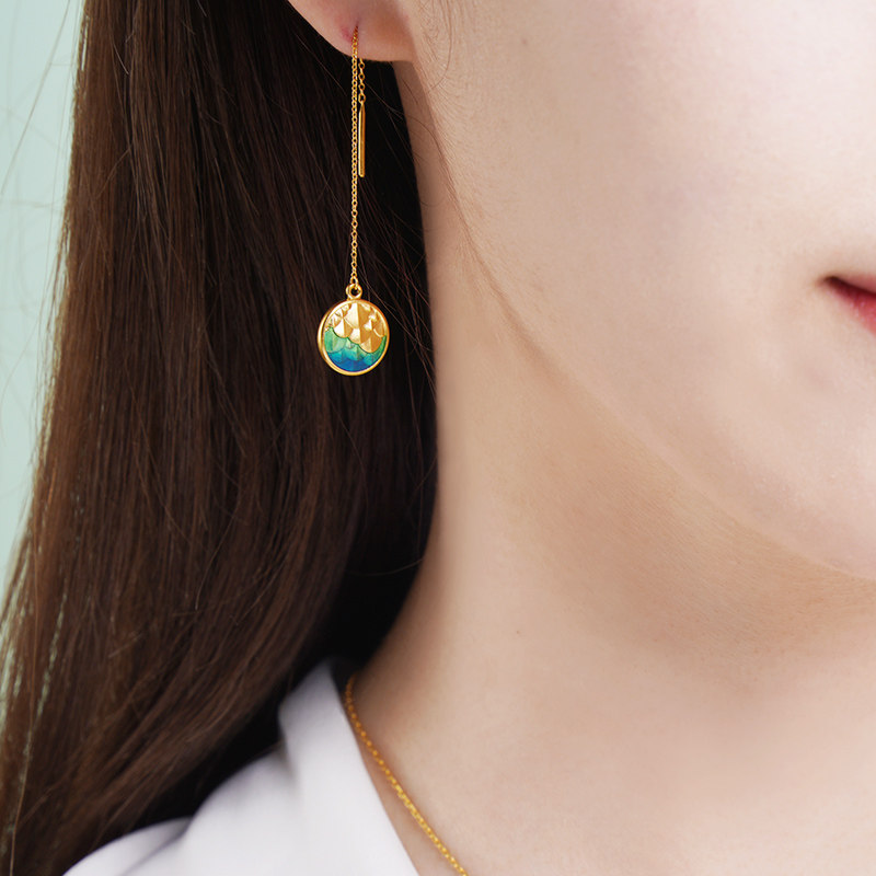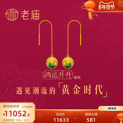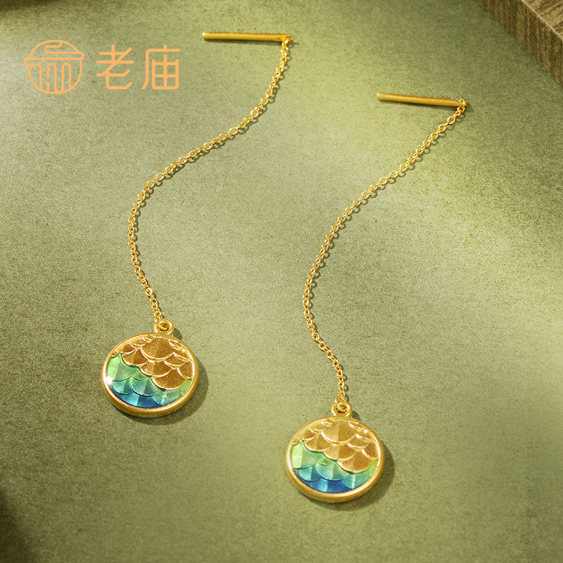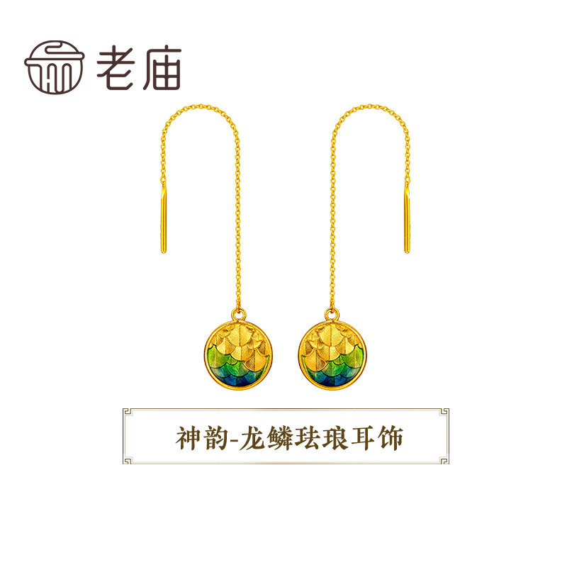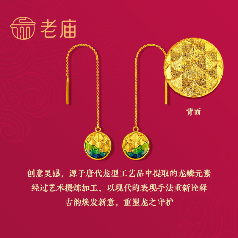 老庙黄金古韵鸿运升升神韵龙鳞珐琅耳饰正品情侣礼薄荷曼波风礼物