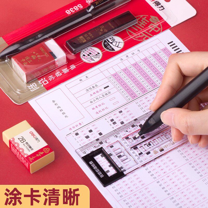 得力涂卡笔考试专用2B铅笔文具套装期末考试用答题卡电脑填涂自动铅笔笔芯中考高考用学习用品小刀固体胶工具