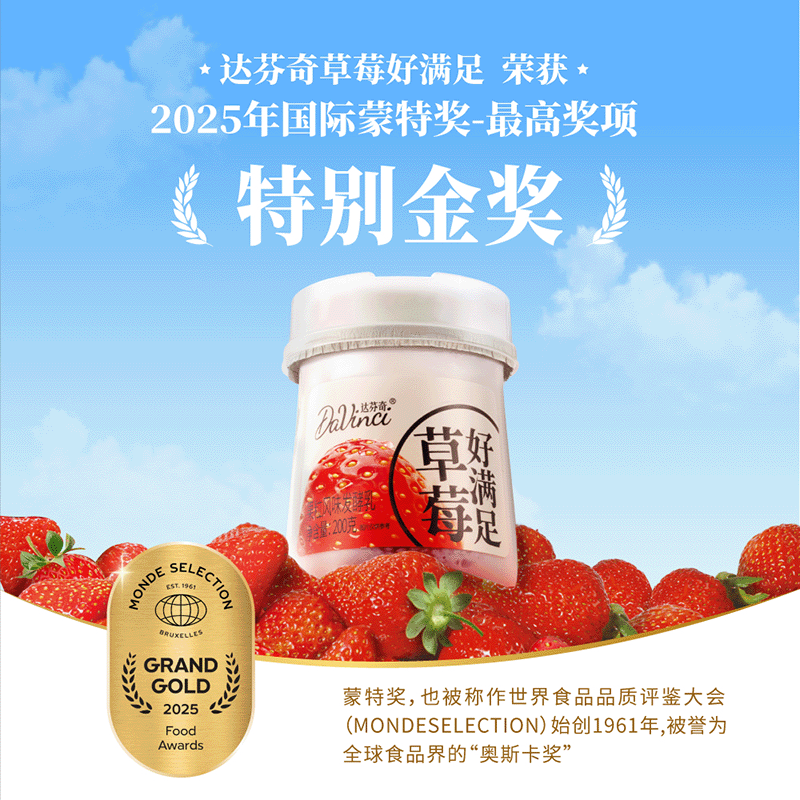 达芬奇酸奶好满足葡萄草莓白桃橘子果粒低温早餐风味发酵乳
