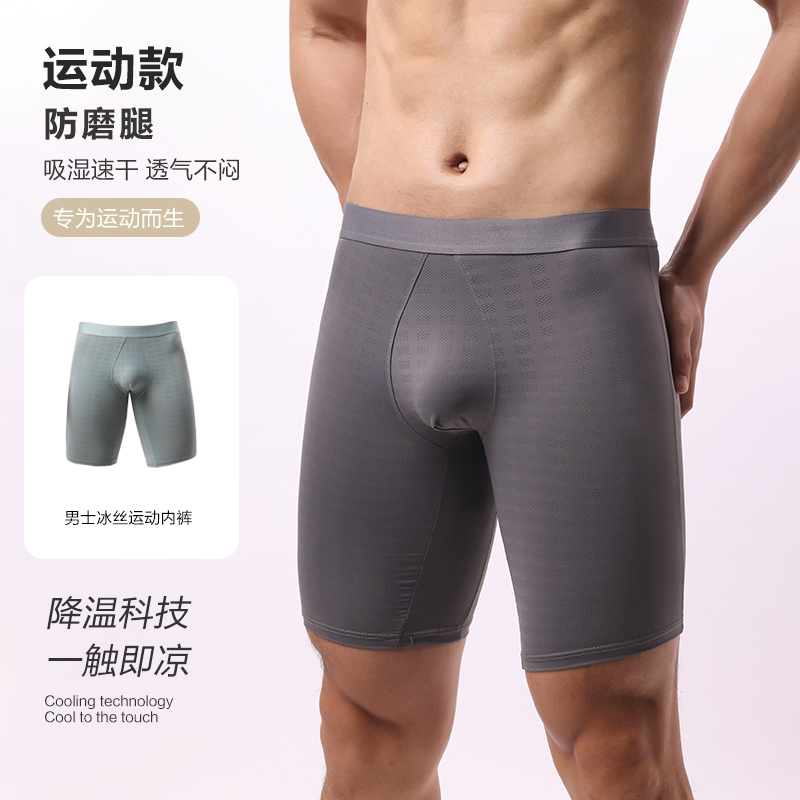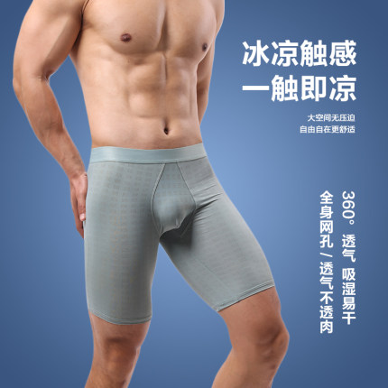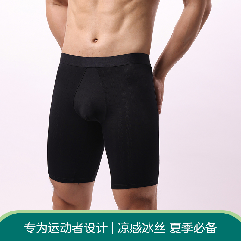 男士防磨腿内裤男生加长款平角不卡裆夏季薄款凉感冰丝大码四角裤