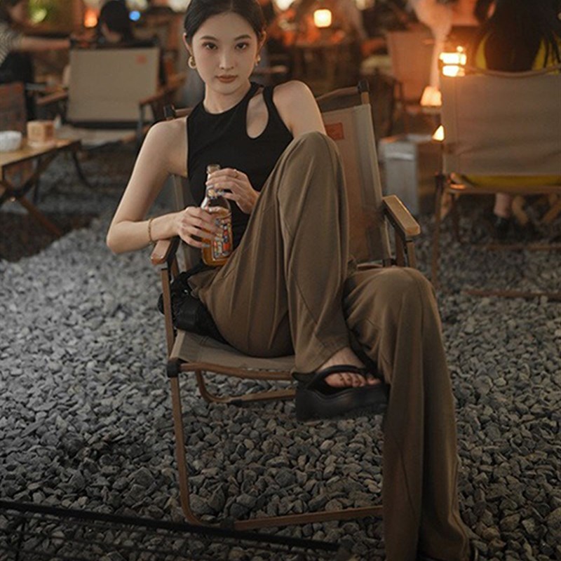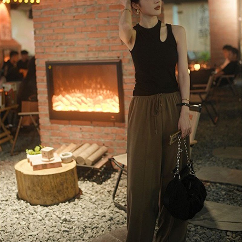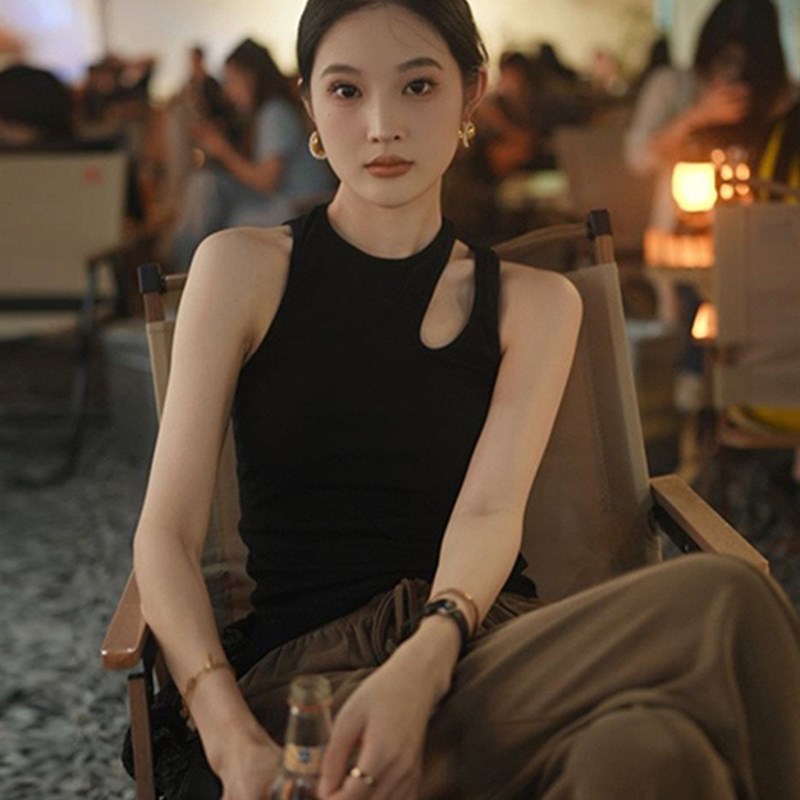 黑色挂脖小吊带背心女夏季法式别致西装内搭外穿无袖露肩打底上衣
