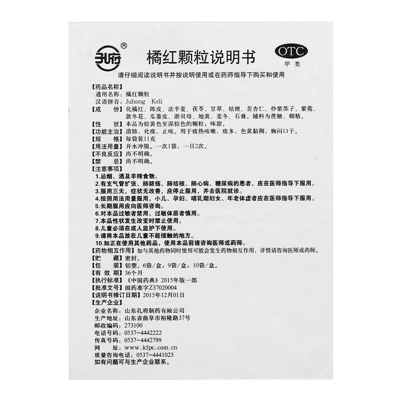 【孔府】橘红颗粒11g*10袋/盒化痰止咳痰多清肺咳嗽