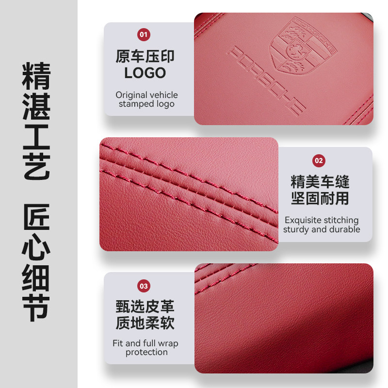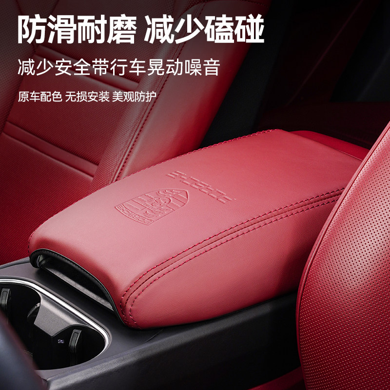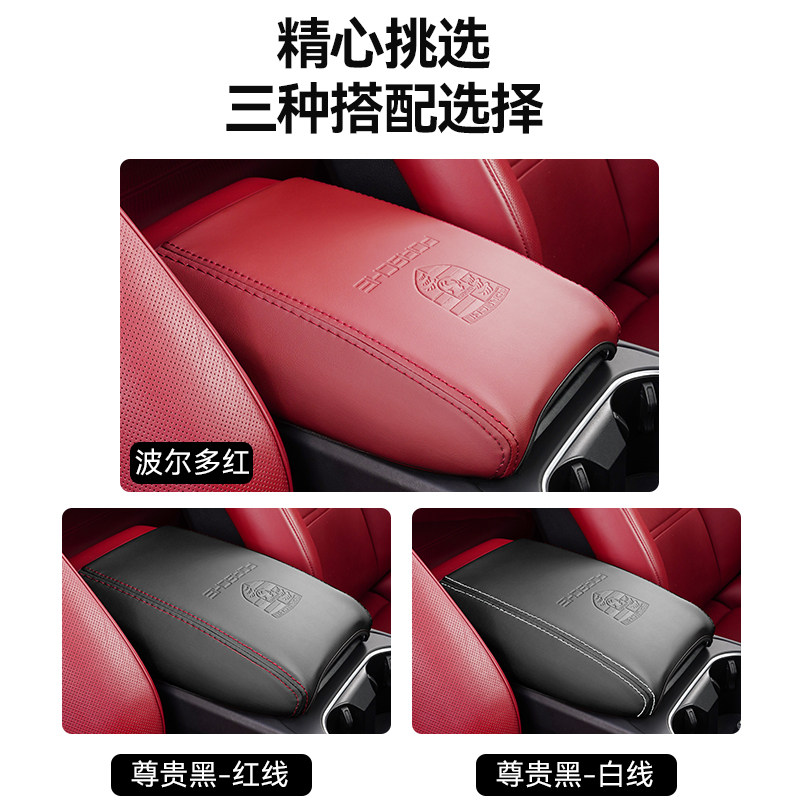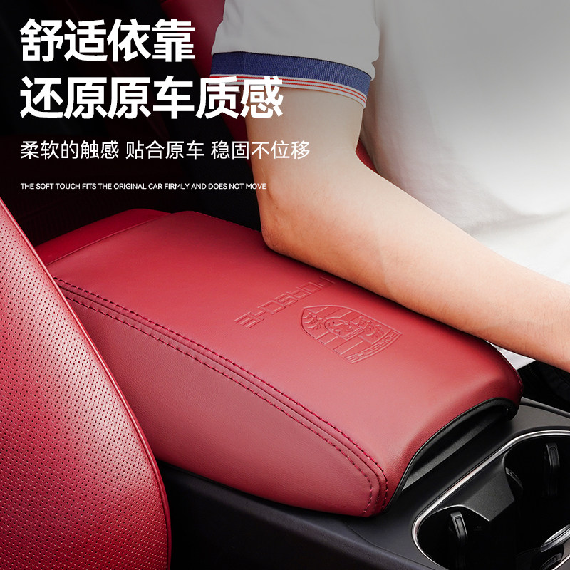 适用保时捷新卡宴Macan玛卡盾徽中控扶手箱套保护套车内装饰用品