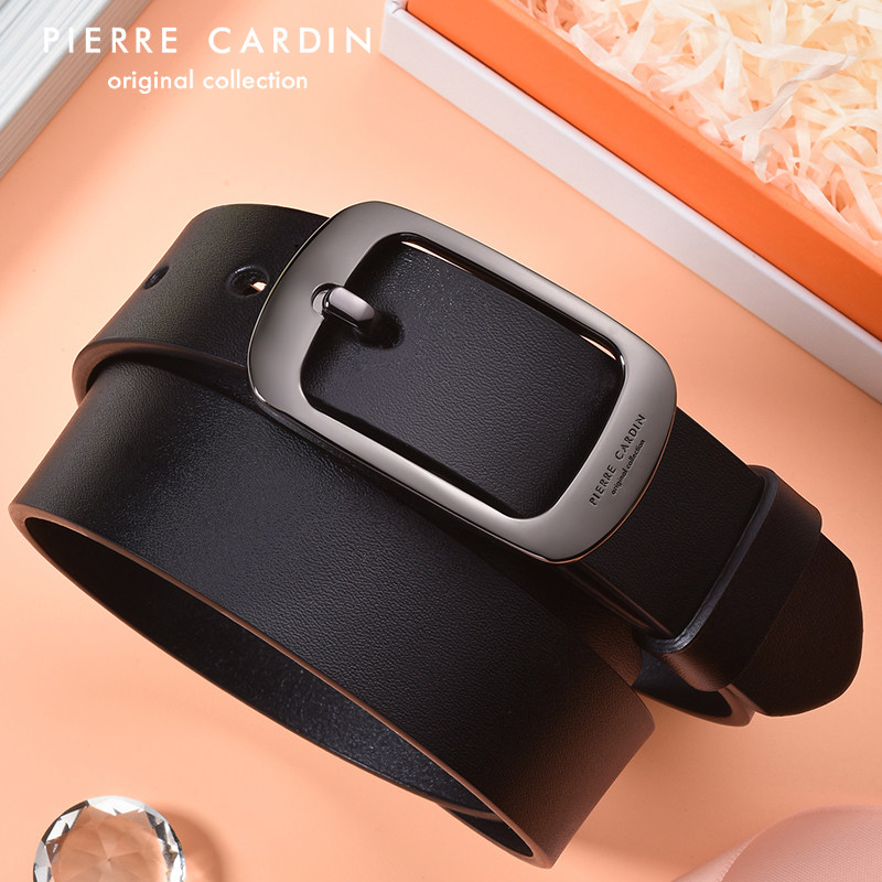 皮尔卡丹皮带女真皮简约百搭配牛仔裤纯牛皮新款针扣腰带女士正品