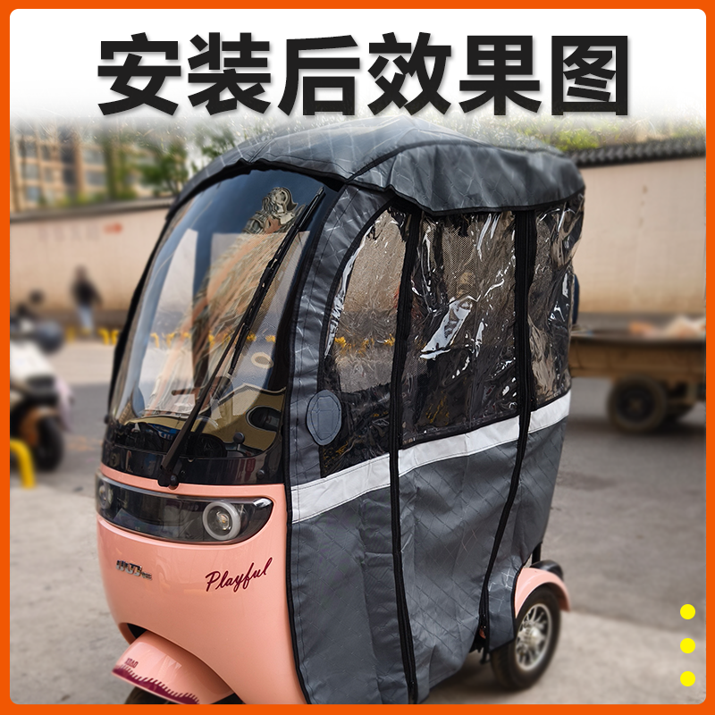 适用于永久飞舞三轮车全包围遮阳加厚皮革挡风一体棚专用雨帘雨棚