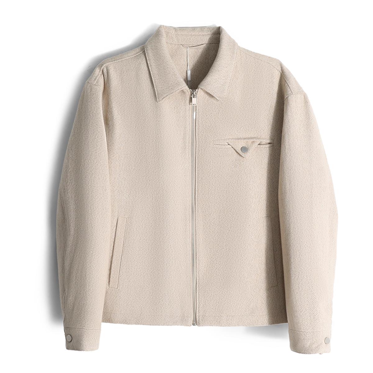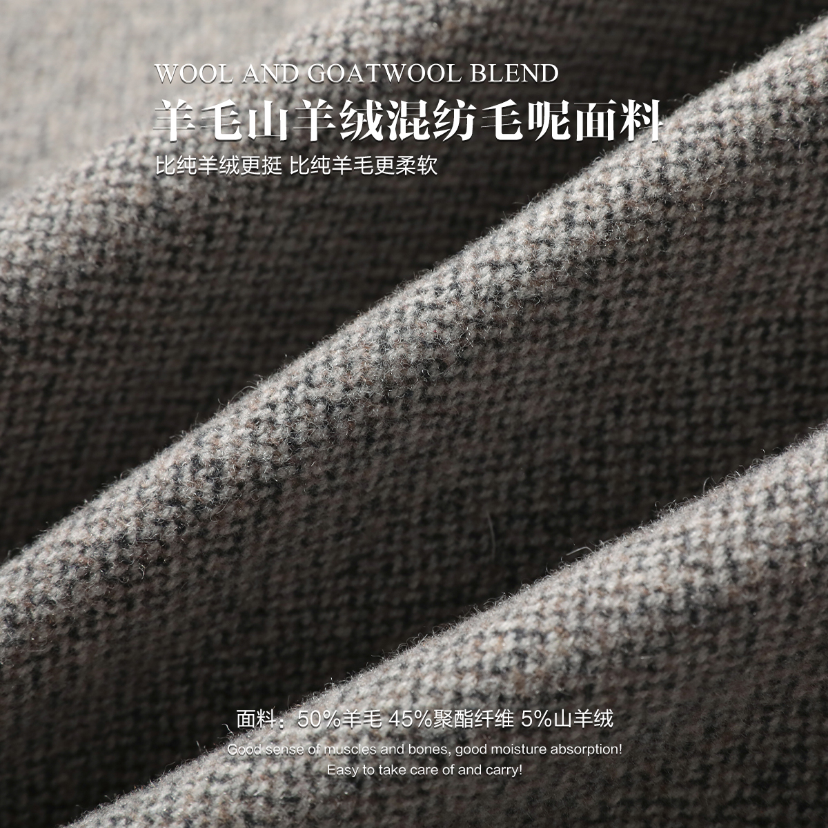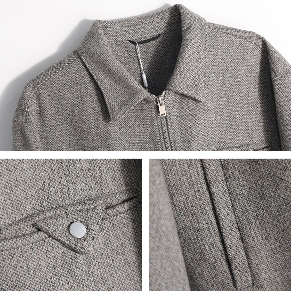 秋冬新款羊毛大衣男士翻领外套浅色商务休闲加厚川字纹毛呢夹克男