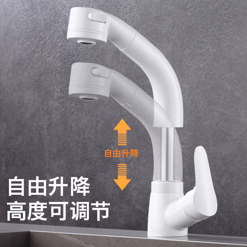 奶白色洗脸盆水龙头卫生间洗手盆面盆台盆冷热抽拉式升降伸缩龙头