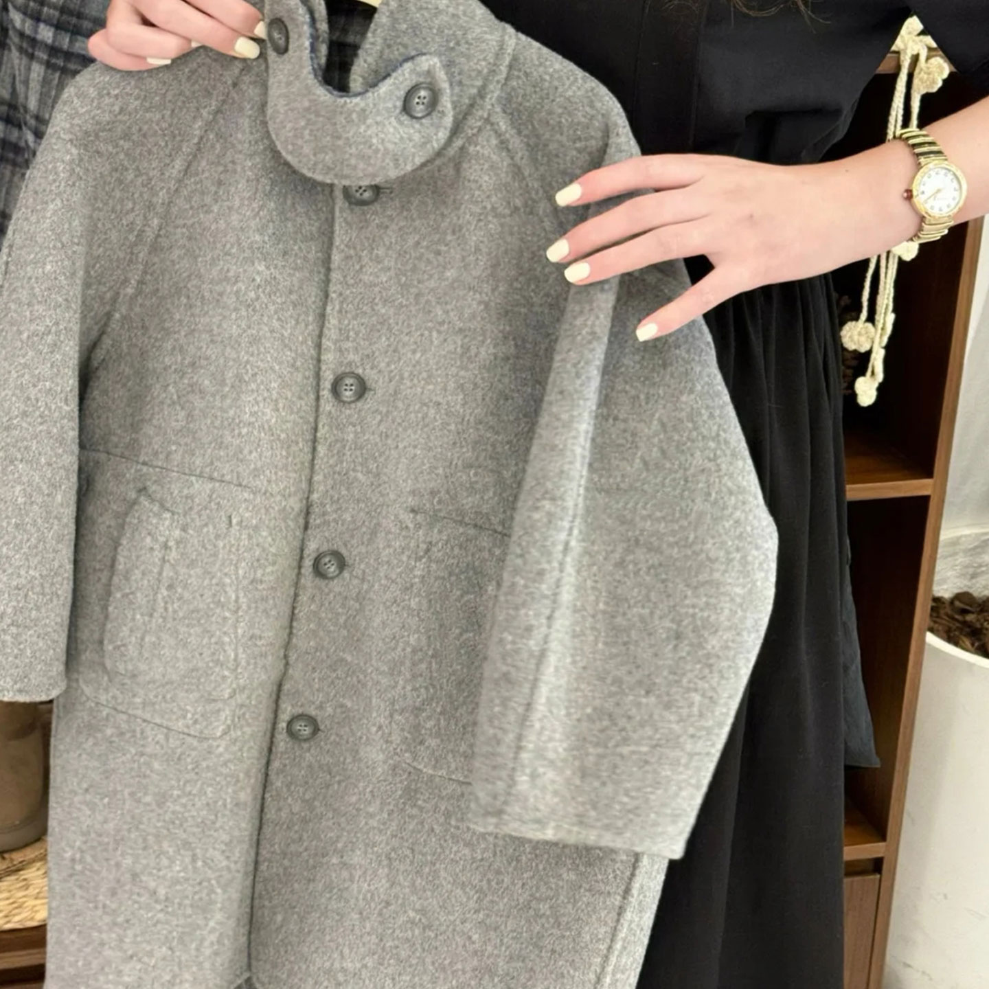 女童毛呢大衣儿童春秋装2025新款中长款保暖外套男宝宝网红上衣潮