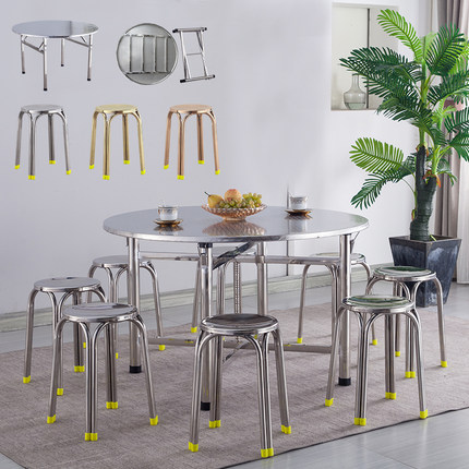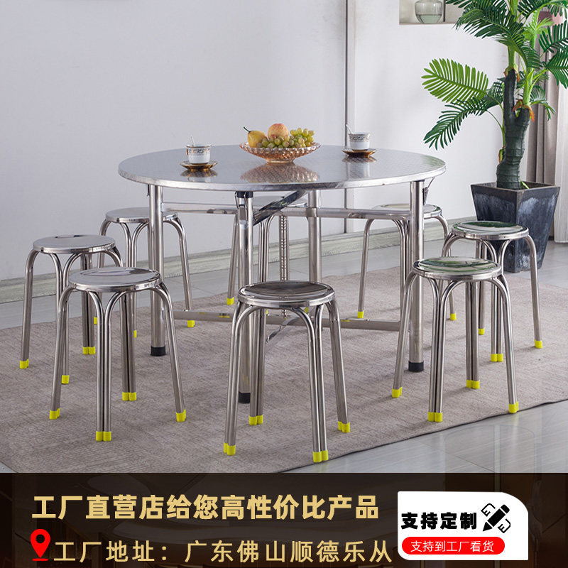 不锈钢餐桌餐椅桌椅组合成套8人10折叠餐厅大圆桌饭桌吃饭桌子12
